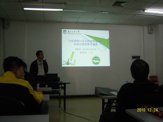 研究生孙田作为一等奖代表队的代表,在第2组(共分4组)第一个汇报该队完成的工作,就主辅模型、误差分析方法和与会专家、同学进行了讨论,其成果得到与会专家、研究生的充分肯定。