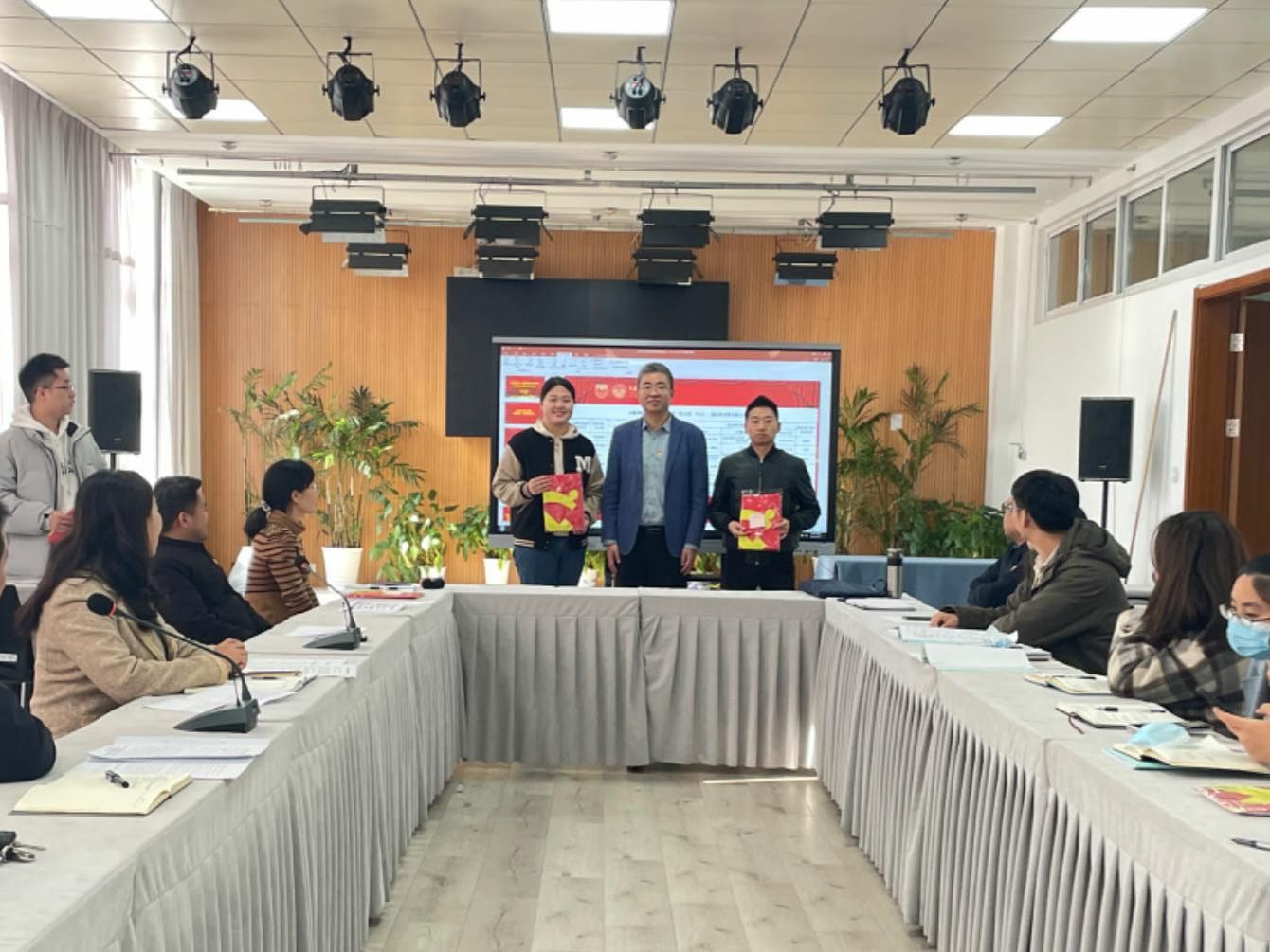 培训环节,党委副书记刘全振领学《中国共产党普通高等学校基层组织工作条例》和《中国共产党支部工作条例(试行)》; 组织员闵珍进行党员发展工作培训,全年党务工作月历分享;视频学习了基层党务工作课程《三会一课》,廉政教育片《多一些》,进行意识形态、保密、防电诈、心理健康、校内交通、实验室管理等方面的安全教育;各支部汇报近期支部工作重点并互查了工作记录本。