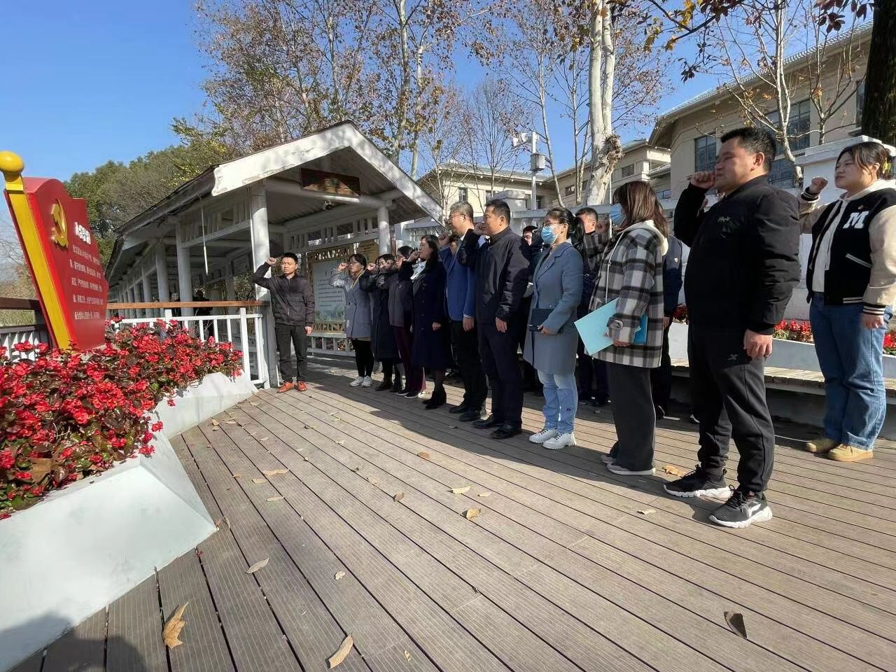 在党委书记许翠梅带领下,大家先来到学校镜湖旁的廉洁长廊,接收廉洁文化教育,重温入党誓词。在亚青三楼会议室,许翠梅书记对新一届支部书记表示祝贺,从学习贯彻习近平新时代中国特色社会主义思想情况、落实党风建设责任情况、执行三重一大决策程序等方面进行廉政谈话。党委副书记、经理周峰介绍公司党委委员联系支部制度,并提出,要发挥公司党委的核心领导力、增强基层党支部的战斗凝聚力、提升党员队伍的示范影响力,及时解决个性与共性问题。随后每位党委委员给联系党支部授旗。