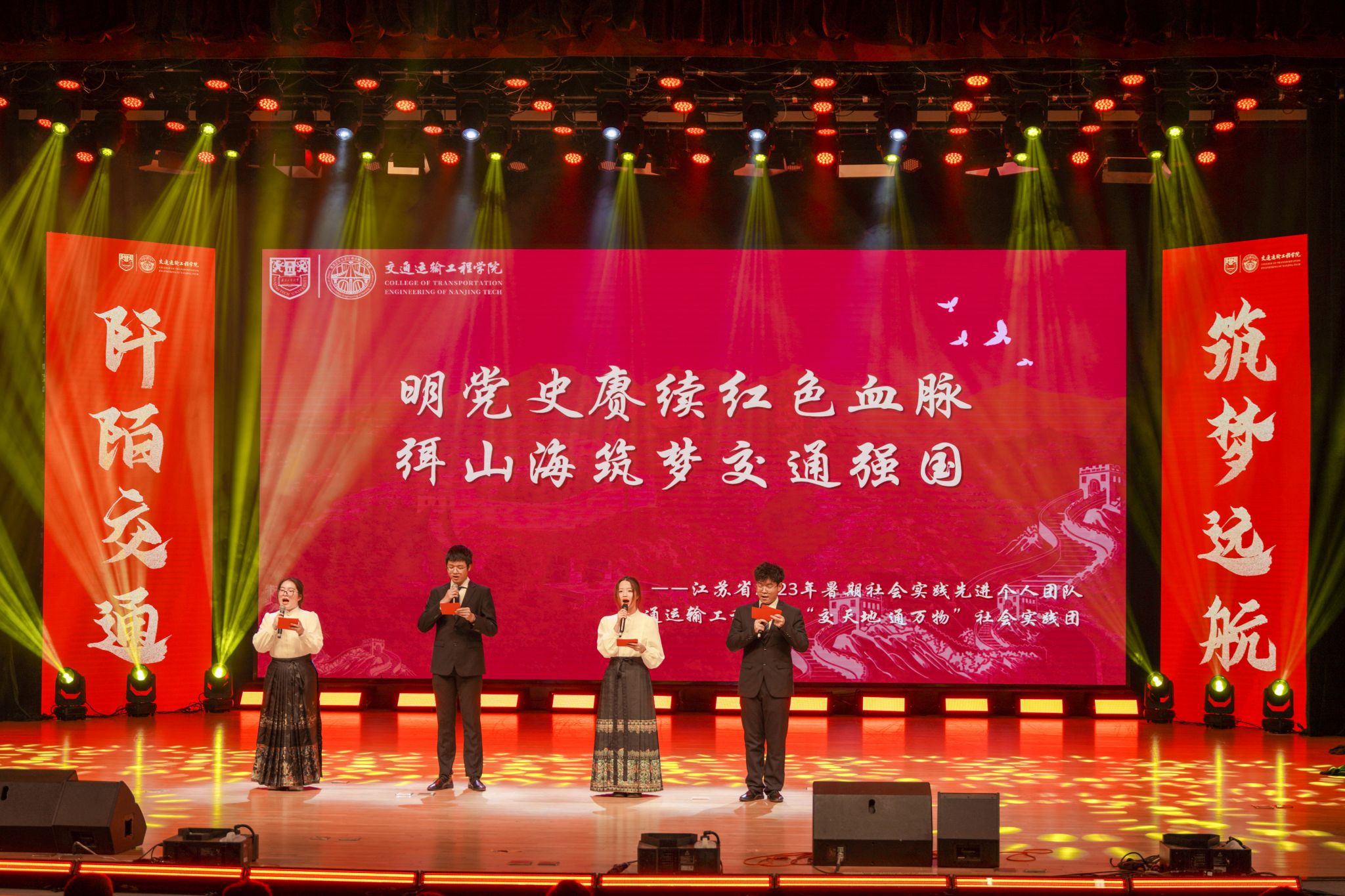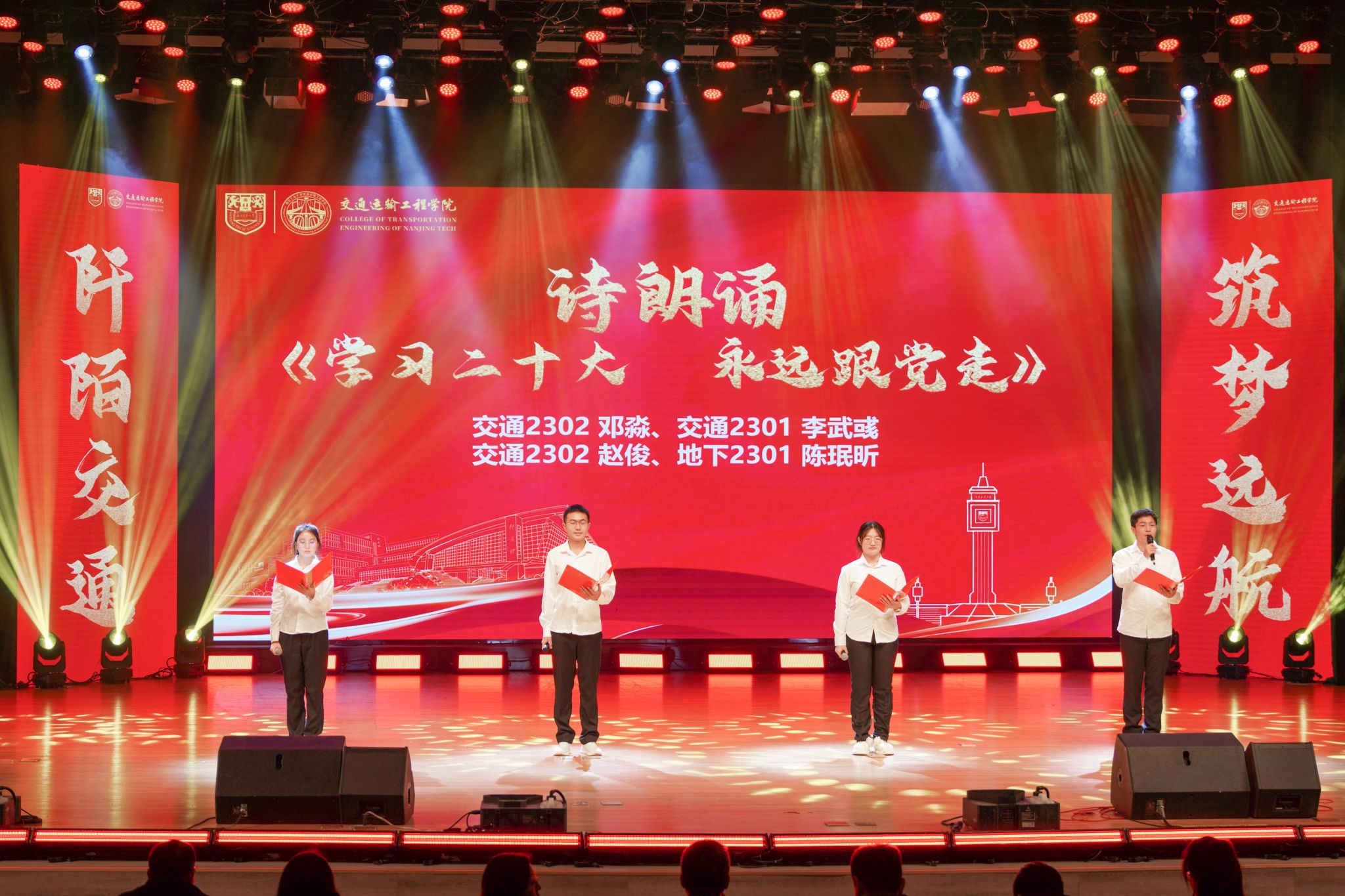 学习二十大,筑梦新征程。周峰经理在致辞中向全体新生提出三点期望:一是心怀“国之大者”,以信仰点亮梦想;二是秉承“工匠精神”,以奋斗激扬梦想;三是坚守“初心使命”,以坚持闪耀梦想。活动在朗诵《学习二十大,永远跟党走》中拉开帷幕。学院教授代表王旭东作《交通强国,青春绽放》主题演讲,分享年少求学与四十年从教经历,鼓励同学们学好知识,增长本领,做出贡献。江苏省社会实践先进个人团队、“交万物,通天下”实践团带来风采展示“明党史赓续红色血脉,弭山海筑梦交通强国”,深入发掘红色基因,歌颂伟大强国成就。在颁奖仪式环节,公司党委书记许翠梅为学院获校2022-2023学年员工先进党支部、优秀共产党员和优秀党务工作者颁发证书。2023国家奖学金获得者、交通2003冯斯特和交研21级储城鑫分享在校成长成才经历,祝愿同学们实现青春理想。