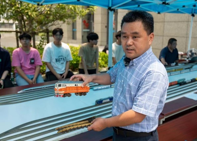 公司李永义老师主持现场专业路演,吸引了大量家长和考生驻足观看、询问。专业路演以“轨道列车为什么没有方向盘”为主题,李老师通过现场轨道与列车模型演示,详细讲解了由“带轮缘的锥形轮+工字形轨道”构成的轮轨体系保证列车在轨道上不落轨、不脱轨安全运行的原理。现场专业路演还通过网上直播向社会播出。