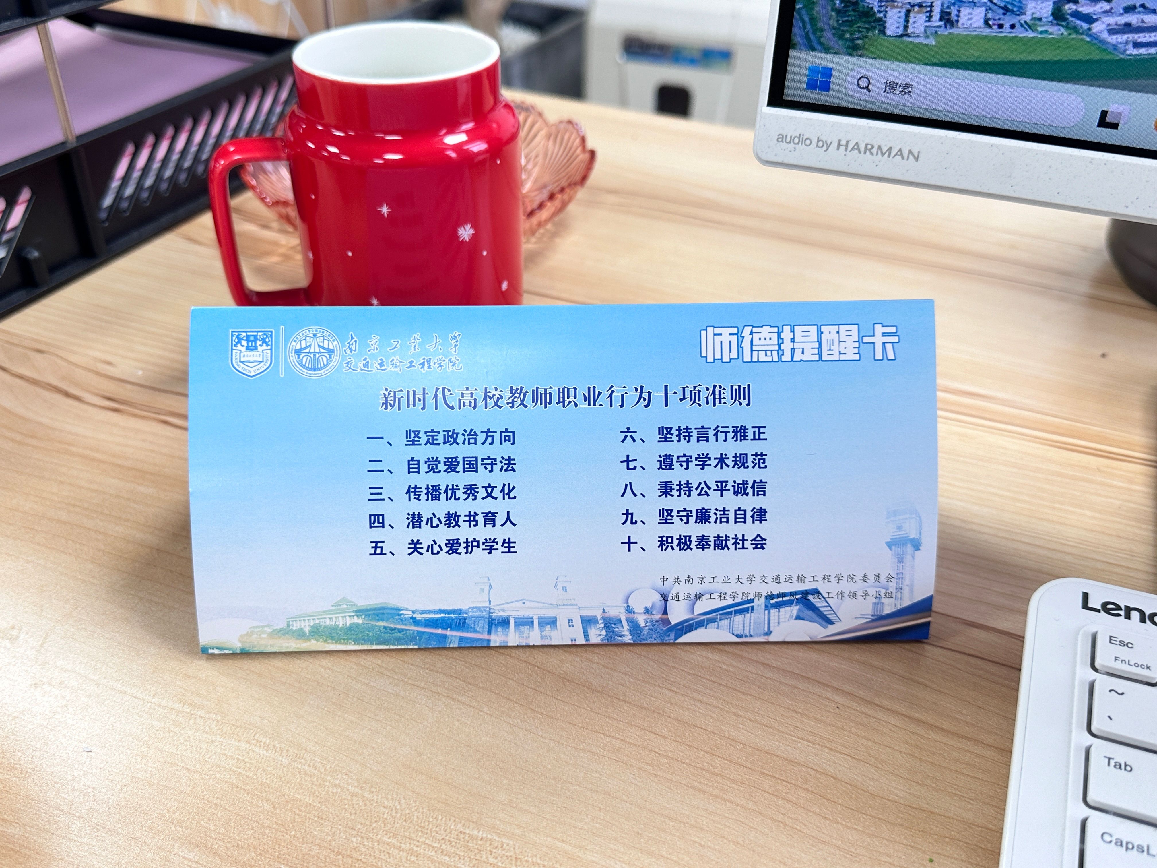 会后,学院给全体教职工发放“师德提醒卡”。