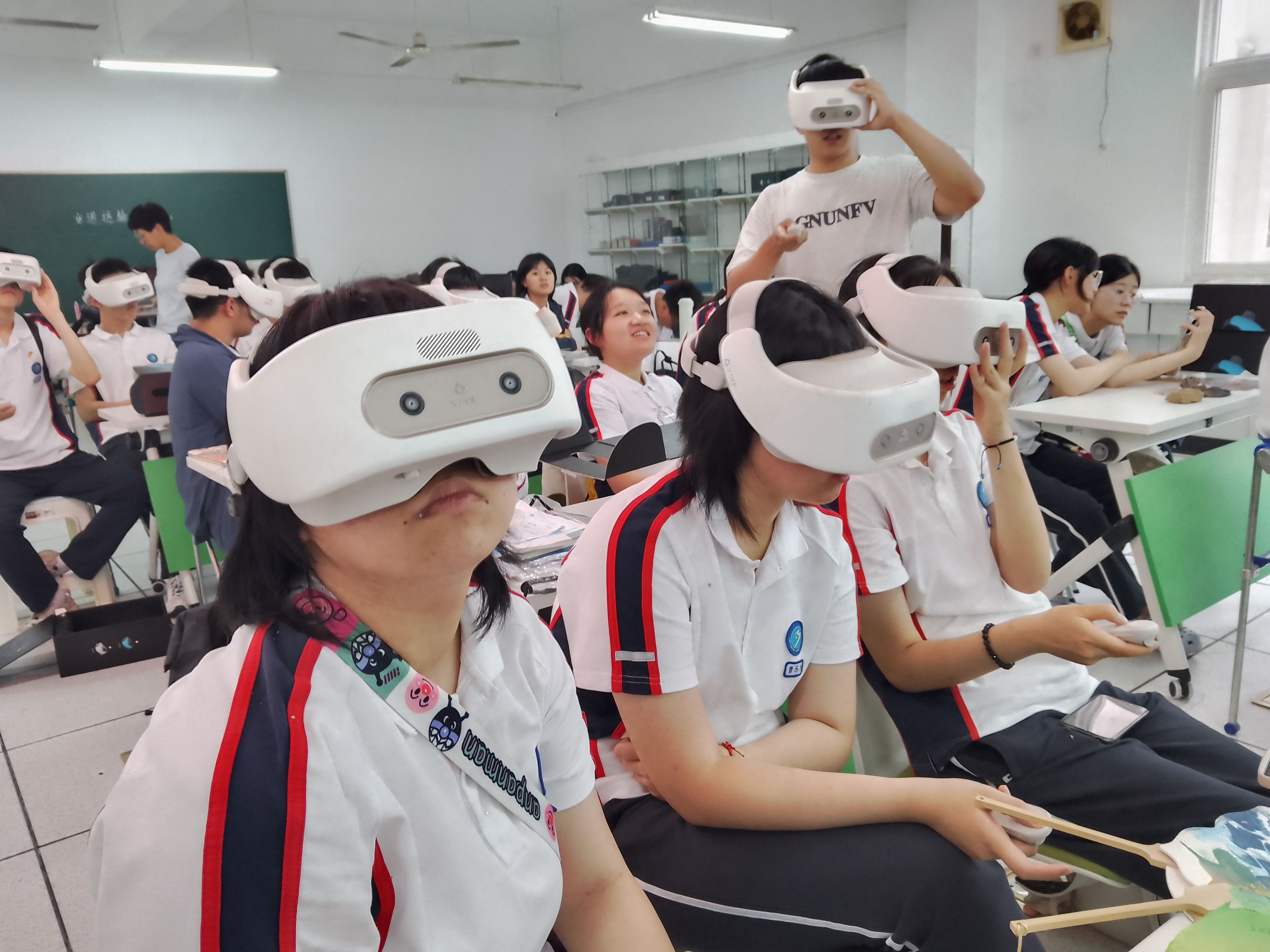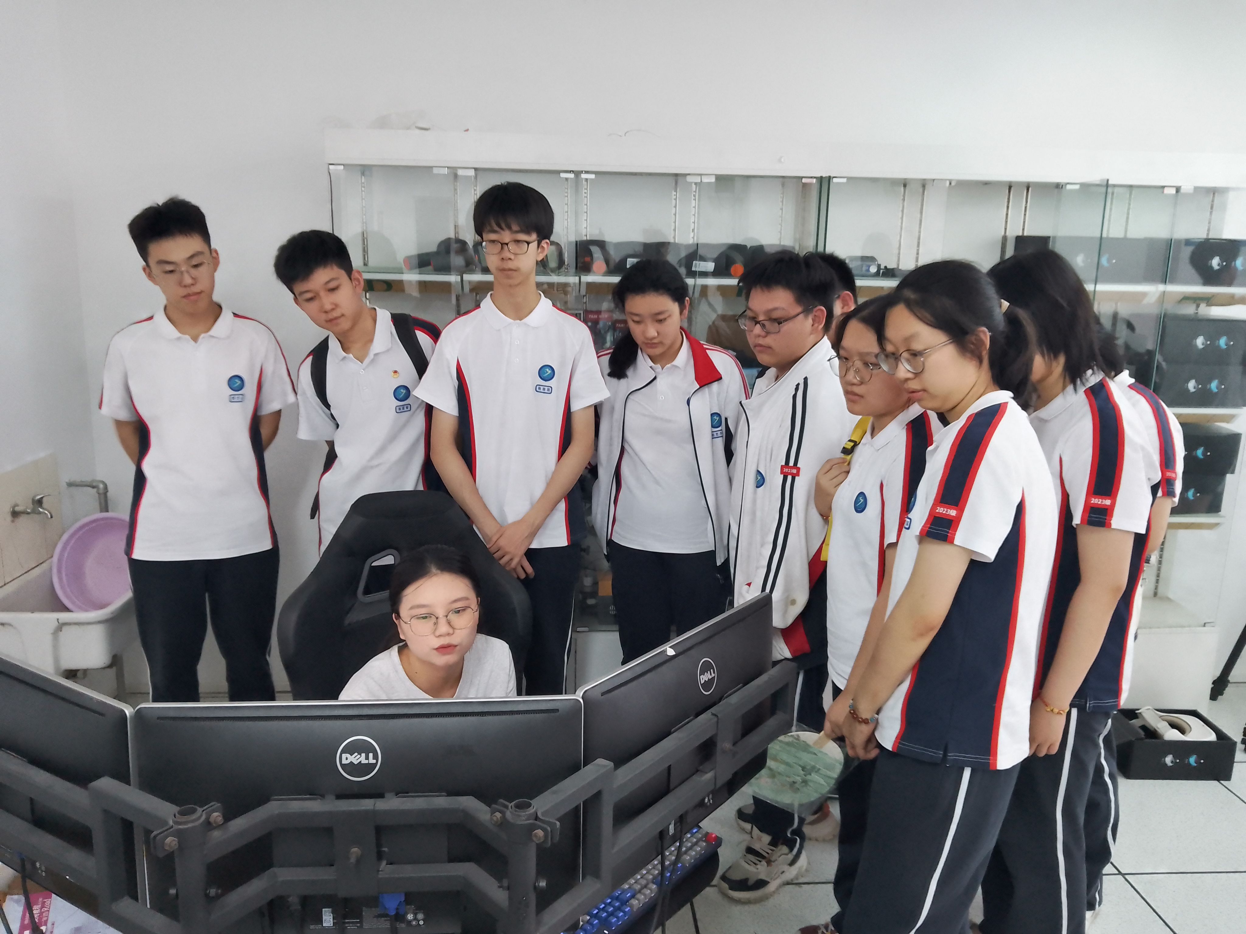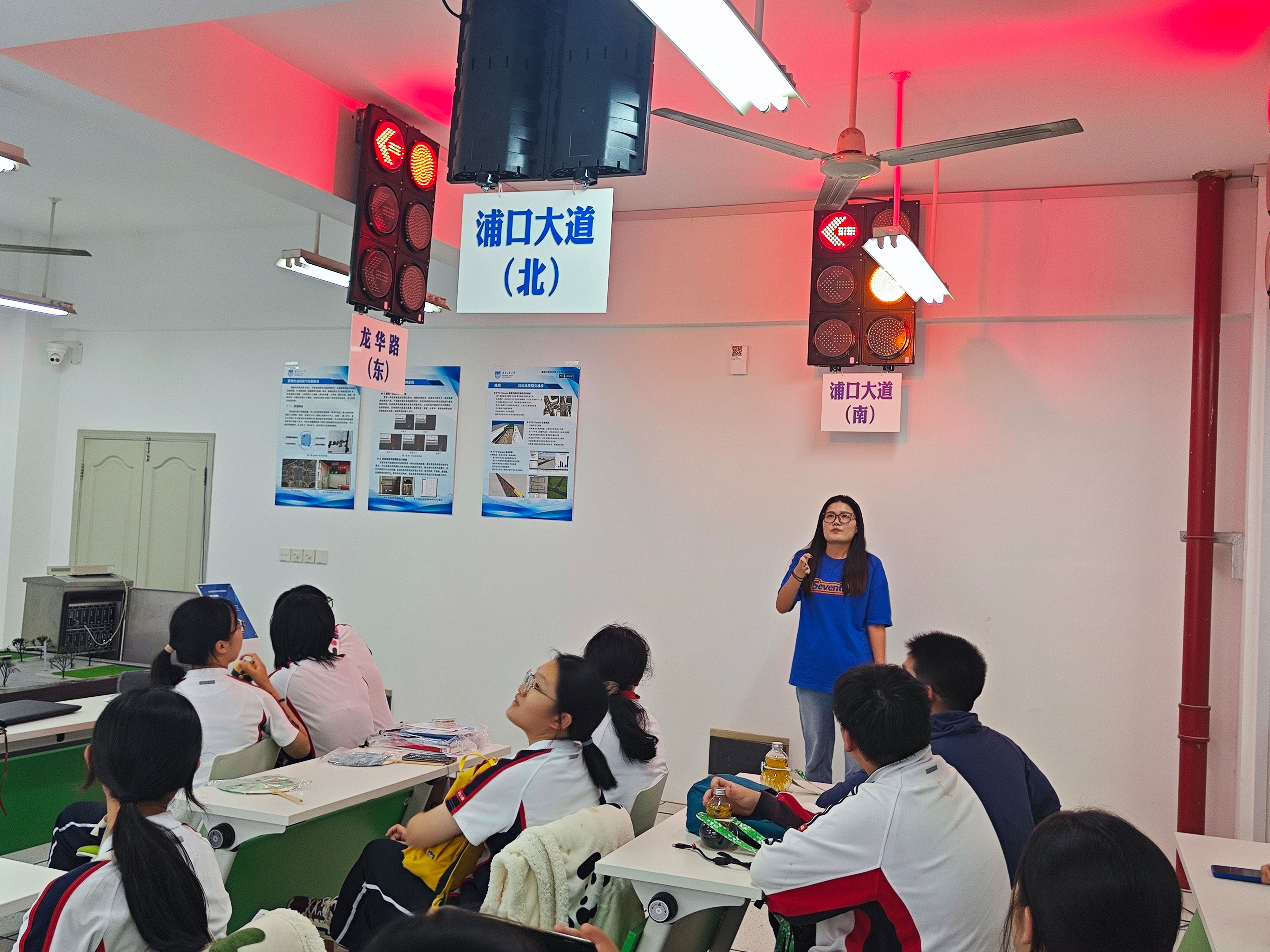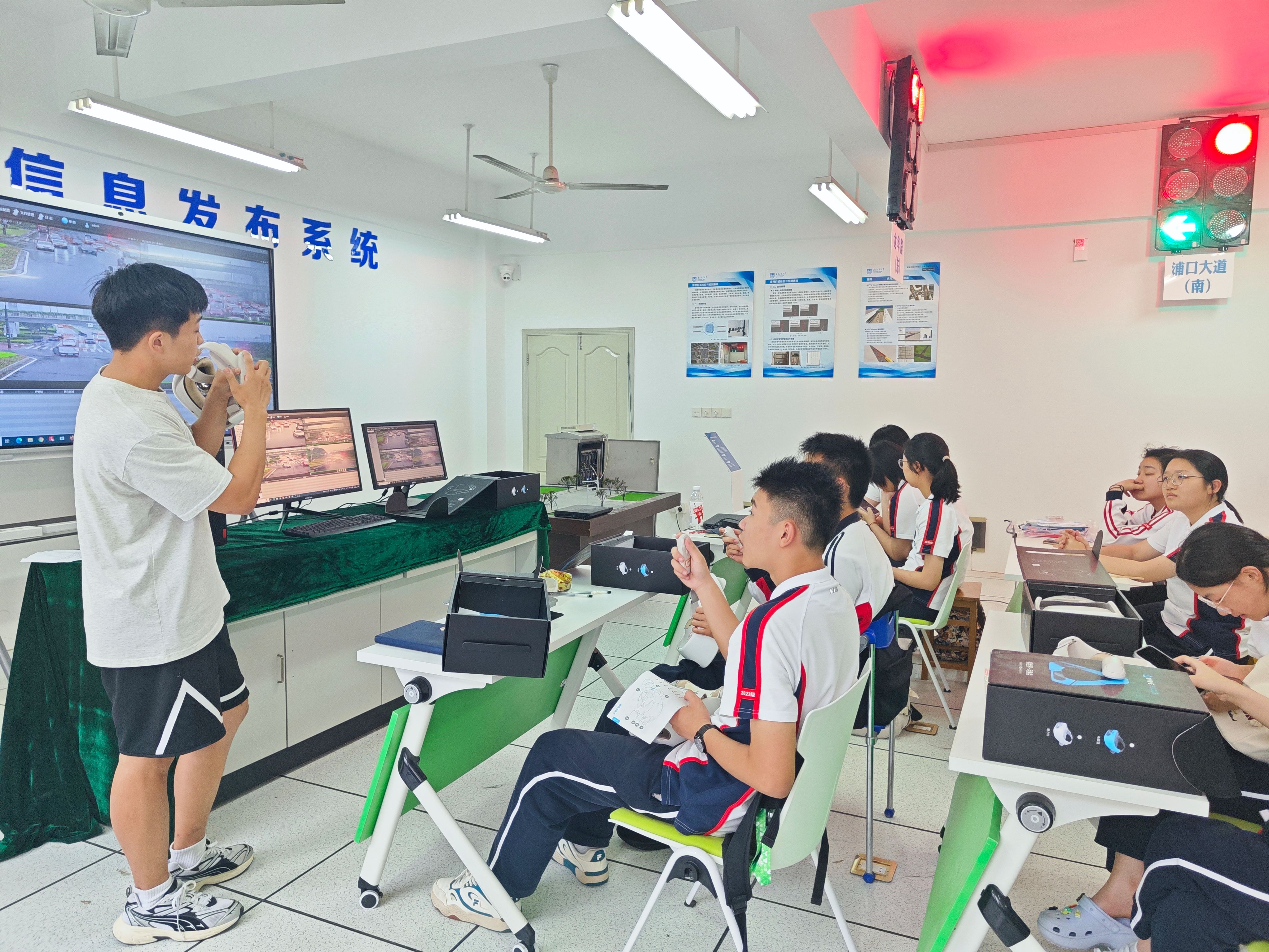 在虚拟仿真室,同学们先听取了雷视自适应信号控制系统的工作原理,感受用“透视眼”和“超远视”功能进行学校南门龙华交叉路口的实时信号数据的收集与分析,从而进行道路信号优化的智能交通功能。然后,在听取相关知识和使用方法后,带上VR眼镜,按照实验步骤,进行岩体工程仿真学习,仿佛穿越时空,身临其境来到一个个虚拟场景,探索科学奥秘。在模拟驾驶室,同学们近距离了解UC win/Road驾驶模拟软件,体验在虚拟的交通世界,驾驶者在不同天气、路况、环境下的驾驶感受及科研魅力。