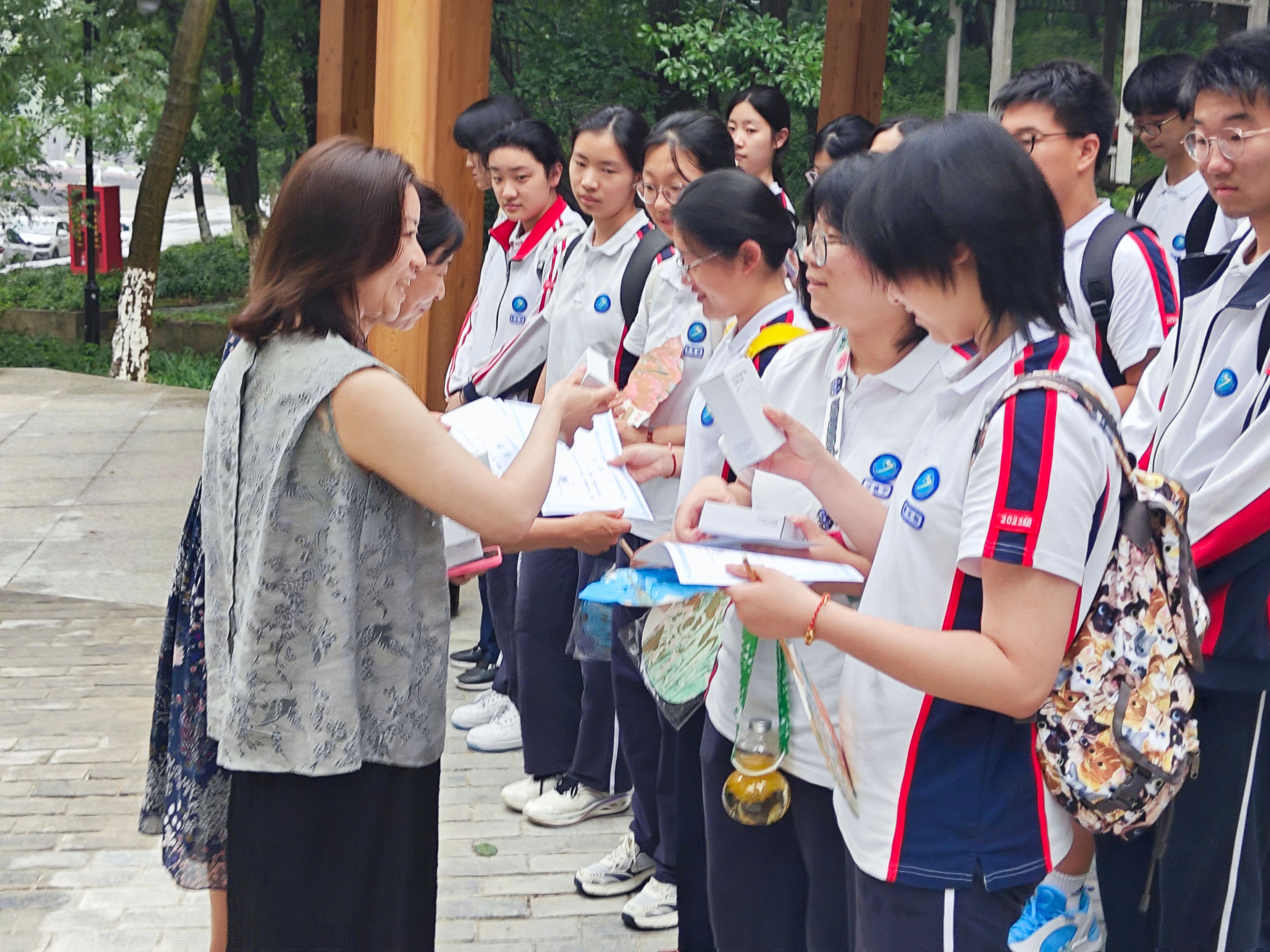结营仪式上,招办主任严励希望同学们坚守初心、勇敢选择,欢迎报考太阳成集团tyc122cc。许书记和严主任一起给同学们颁发研学证书、赠送小礼品。