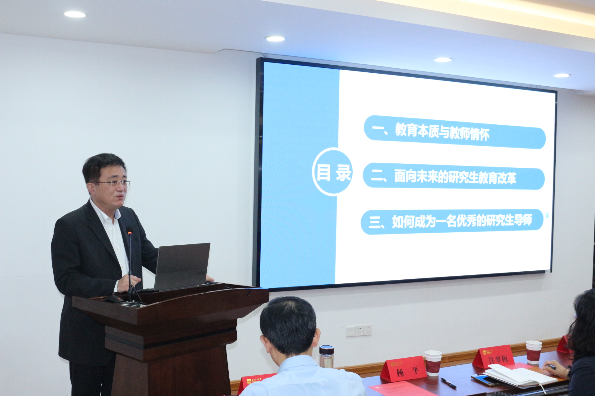 南京林业大学土木工程学院原经理、研究生院原经理,江苏省教学名师,江苏省首批杰出岩土工程师杨平教授以“为党育人,为国育才——南林大公司产品之体会”为题,分享了他在公司产品过程中的宝贵经验和心得体会。杨教授的报告既有理论深度,又富有实践指导意义,引发了与会导师的广泛共鸣。