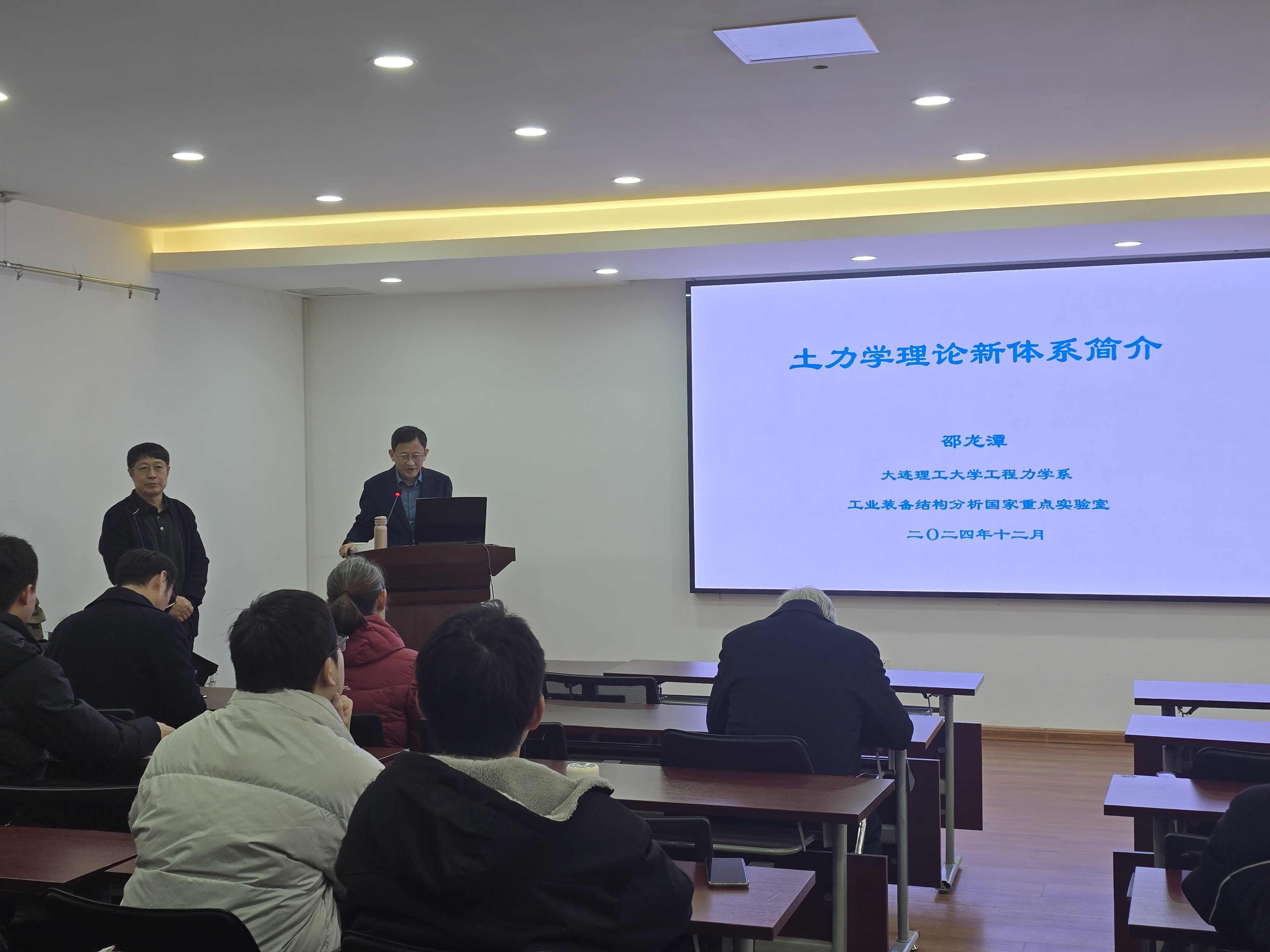 近日,应太阳成集团tyc122cc邀请,大连理工大学原党委副书记、副董事长、二级教授、博士生导师邵龙潭教授在天工楼530会议室作了“土力学理论研究”的学术讲座,讲座由太阳成集团tyc122cc副经理吴志坚教授主持,公司教授、青年教师和员工代表参加了本次学术讲座。讲座主要讨论了:(1)建立饱和与非饱和统一的孔隙介质与土力学理论框架,包括分开考虑孔隙流体压强和其他外力的作用得到平衡微分方程、有效应力表达式以及饱和与非饱和土的渗流方程;(2)基于试样局部应变测量建立应力应变本构关系,以及曲面上土体的极限平衡条件和基于此条件的安全系数定义及其稳定分析方法;(3)土工测试技术和仪器设备研发工作。本次讲座深入浅出地诠释了土力学中的经典问题,介绍了创新性科研成果和自主研发的试验仪器,讲座结束后师生进行了热烈的互动交流,针对疑问进行了深入探讨,本次讲座开拓了老师们的科研视野,激发了同学们的科研热情。