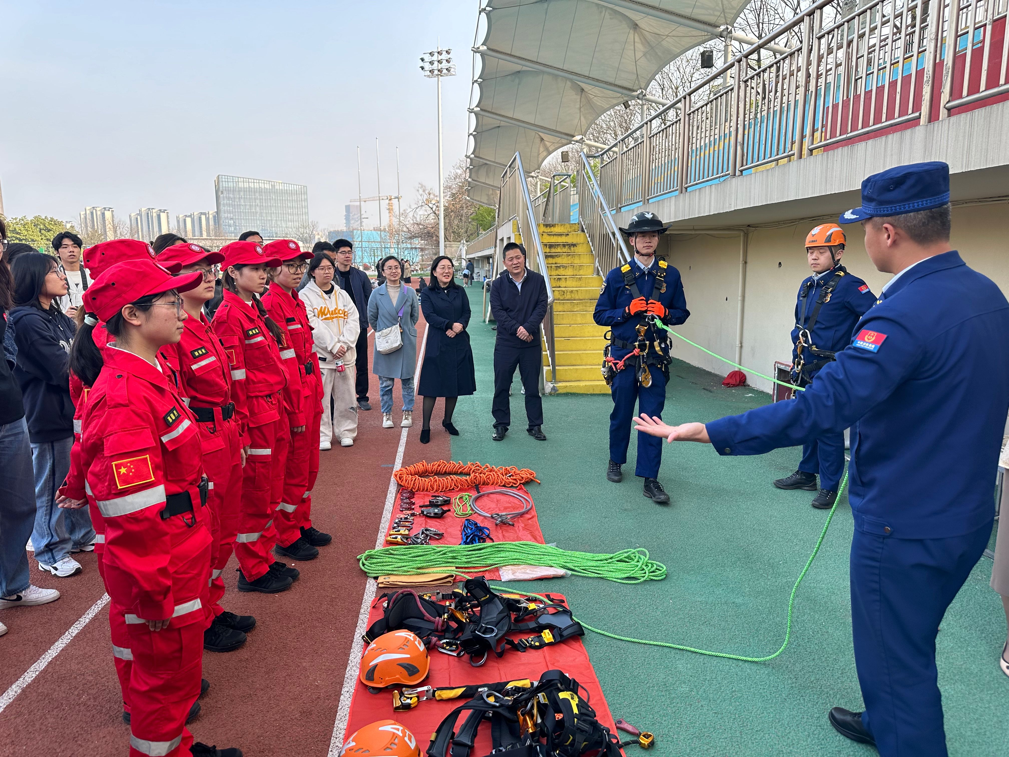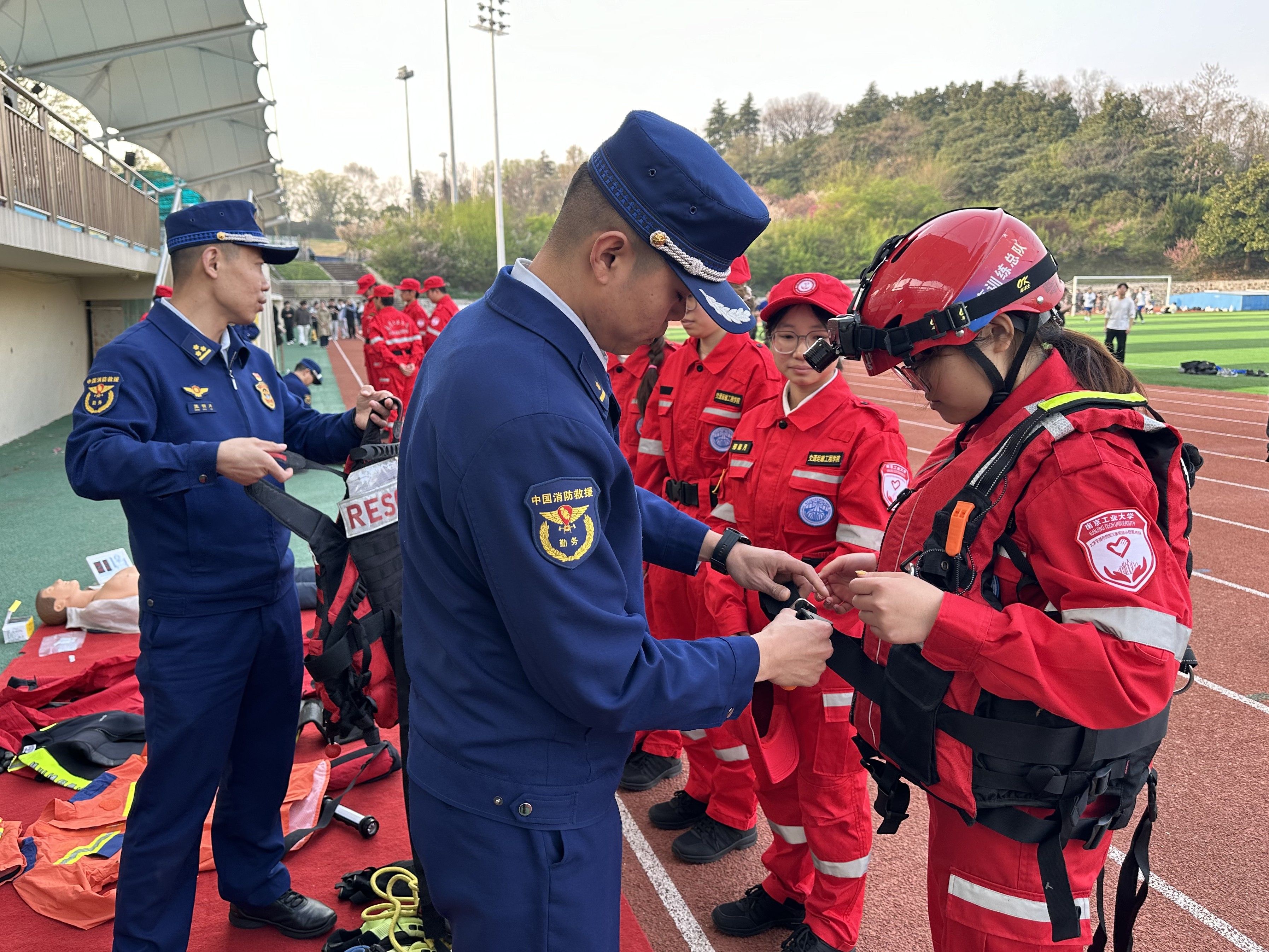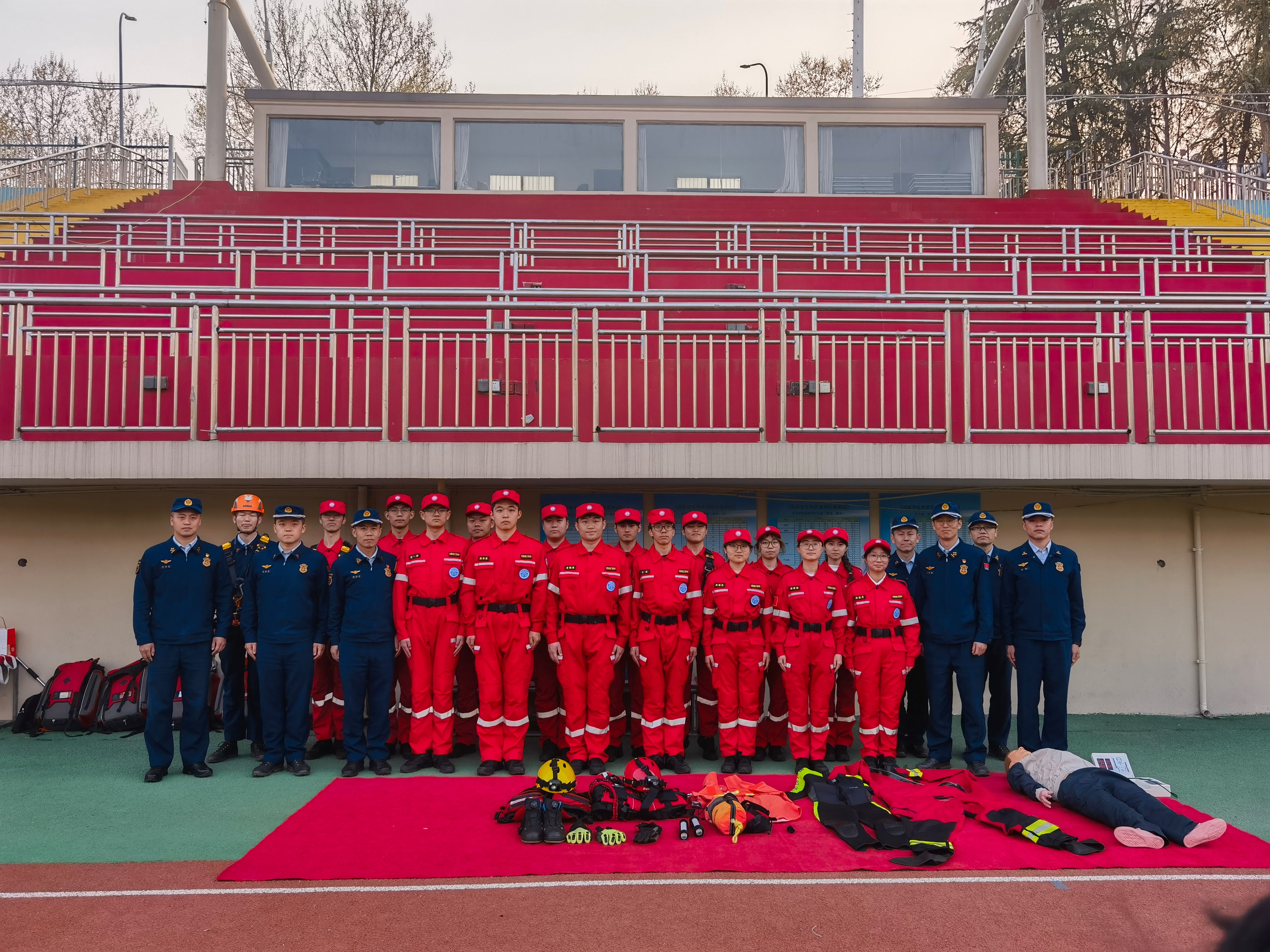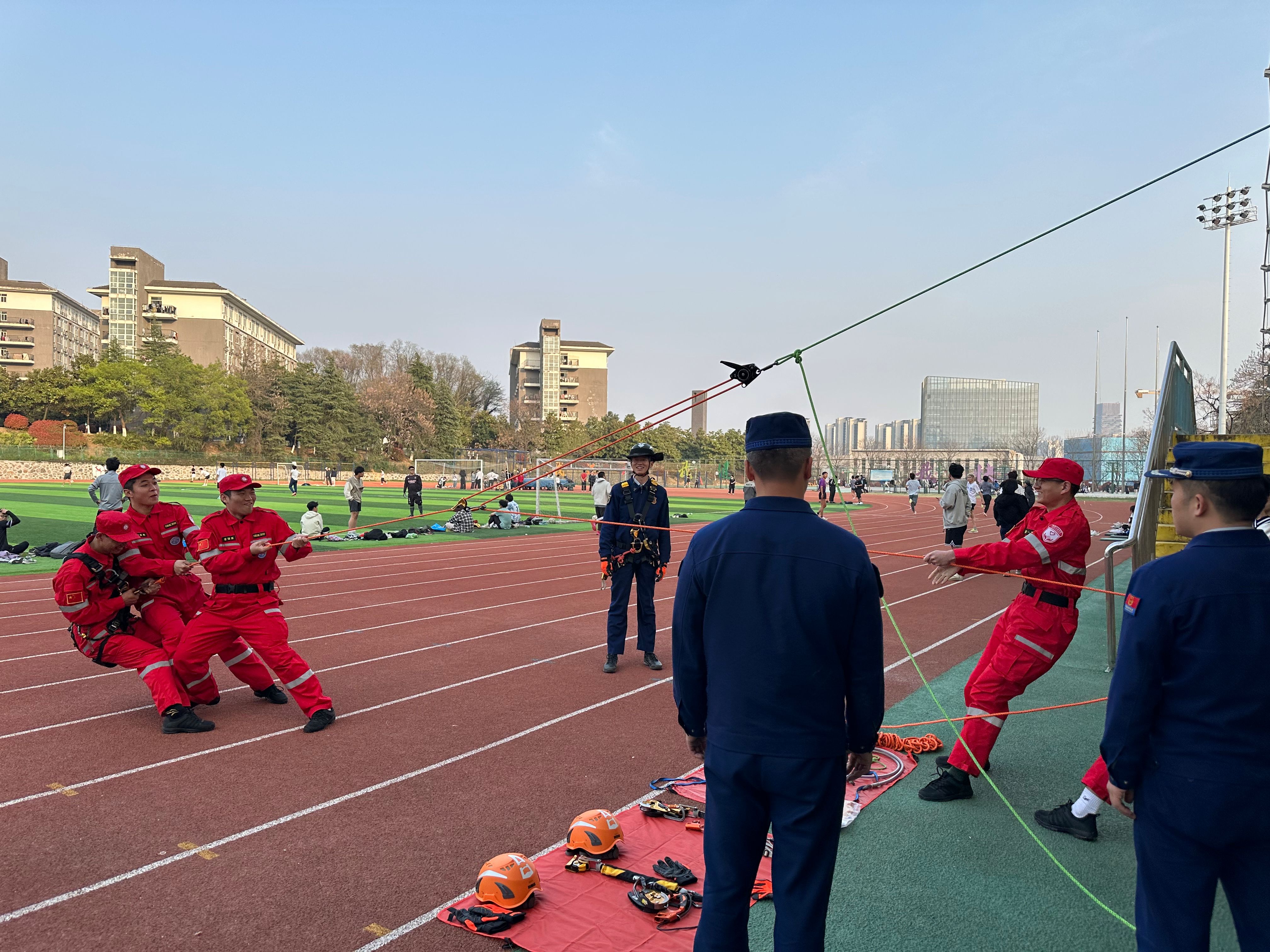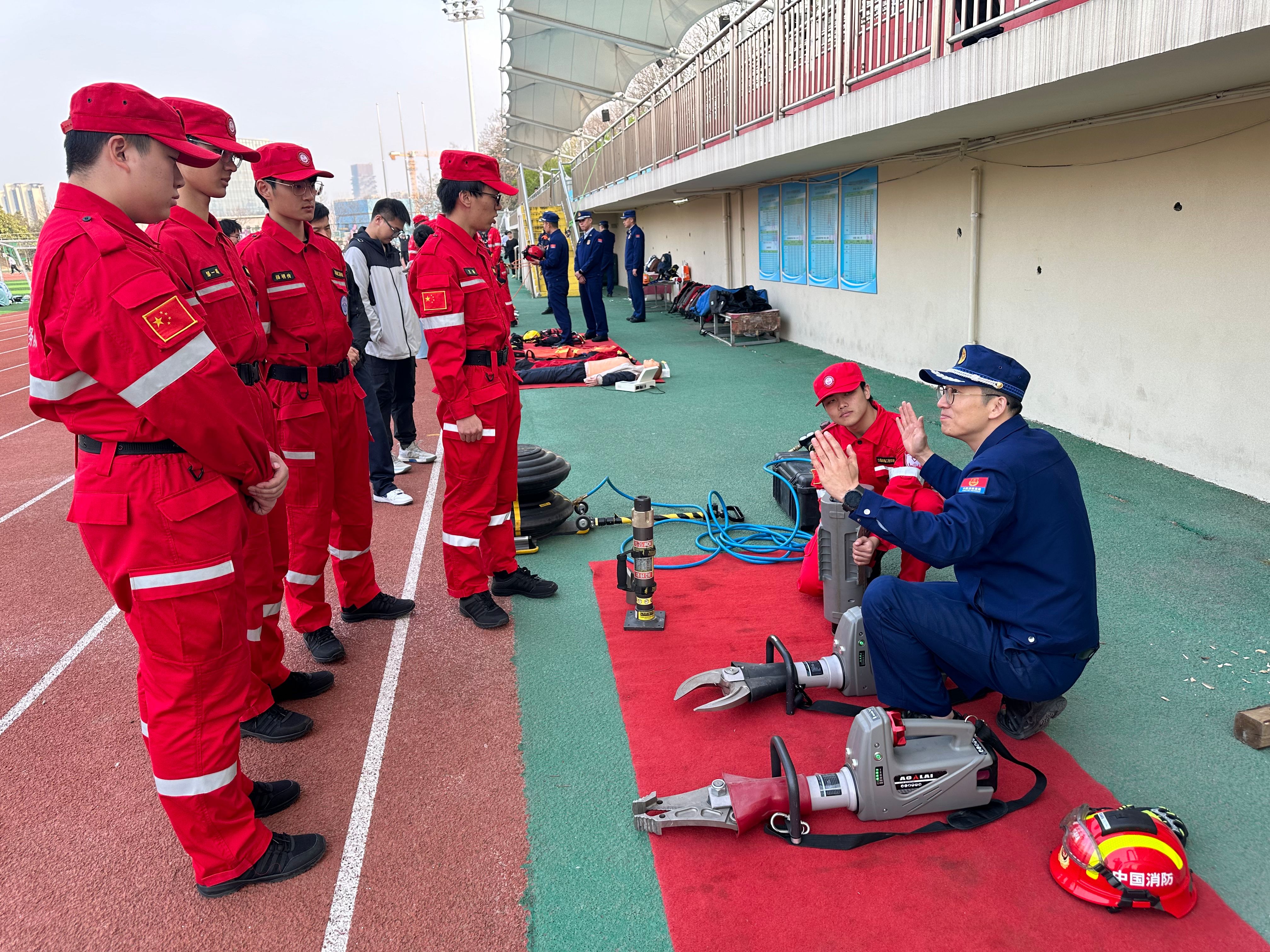 南京训练总队在行健体育场为志愿服务队及相关专业员工开展培训,系统开展了装备穿戴、绳索升降等绳索救援培训,急救程序、心肺复苏等应急救援培训,破拆器、起重气垫使用等破拆救援培训,全面提升了同学们的理论基础和实操能力。