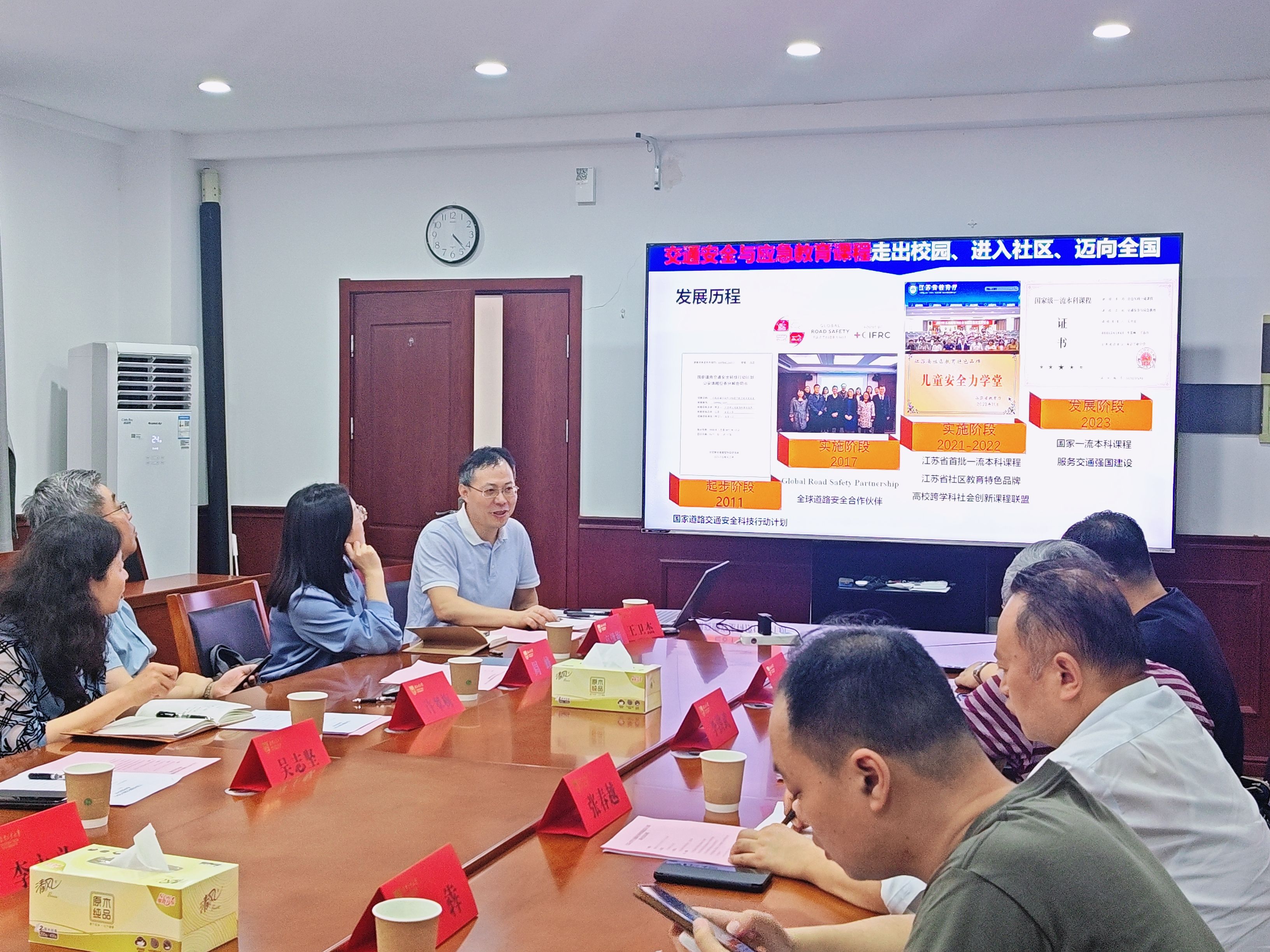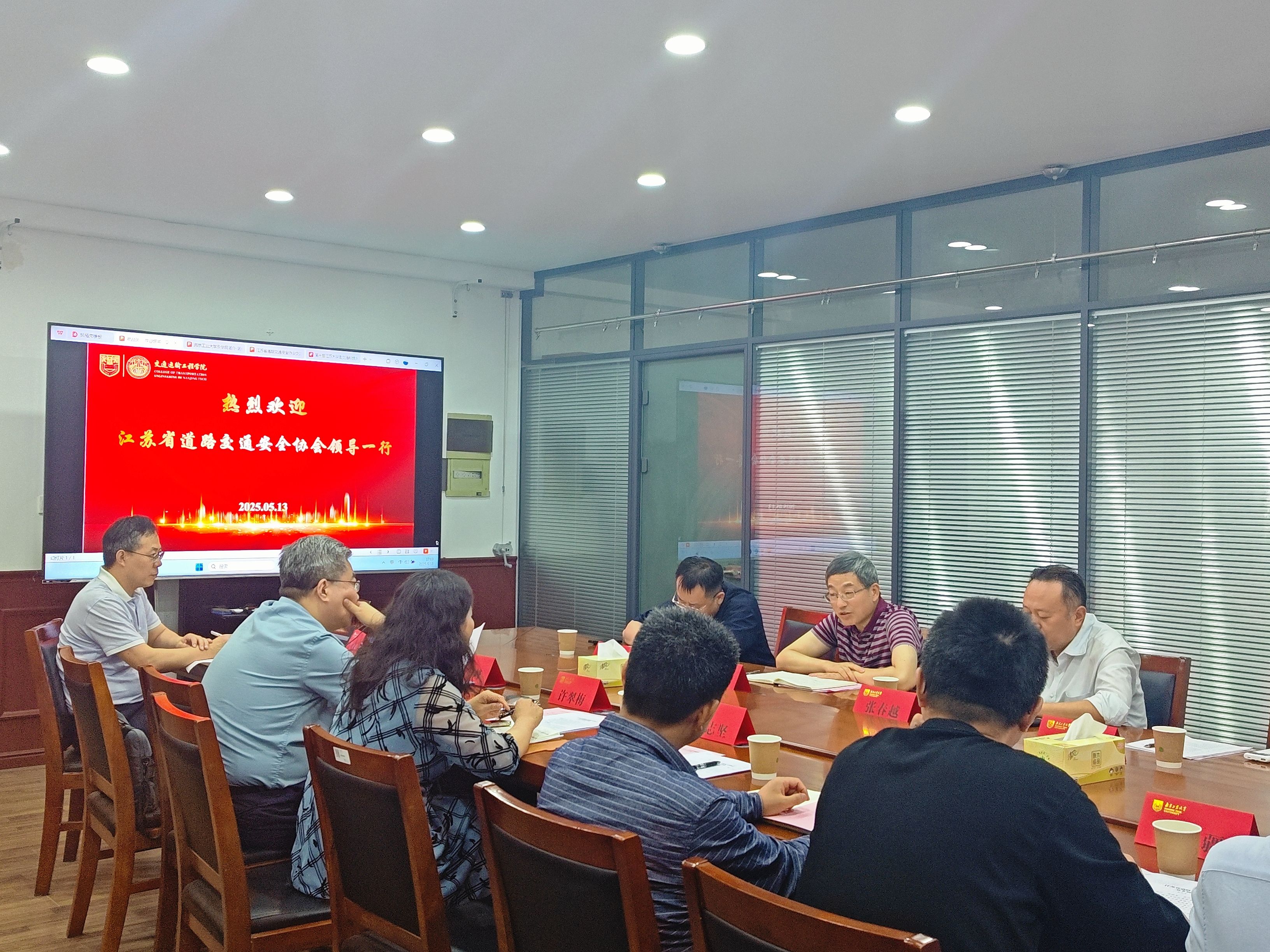 许翠梅对江苏省道路交通安全协会领导一行表示热烈欢迎,并介绍了学校的基本情况;吴志坚介绍了学院的相关情况。李洪武介绍了协会概况及近三年有关工作情况,并对学院的相关研究工作给予了指导。江苏省道路交通安全协会理事、交通工程系王卫杰教授介绍了交通安全相关研究及科普工作开展等情况。双方就道路交通安全研究展开交流,探讨了合作方向。周峰经理表示,学院将加强与协会的联系,紧密合作,共同推动交通安全领域的科技创新和人才培养。