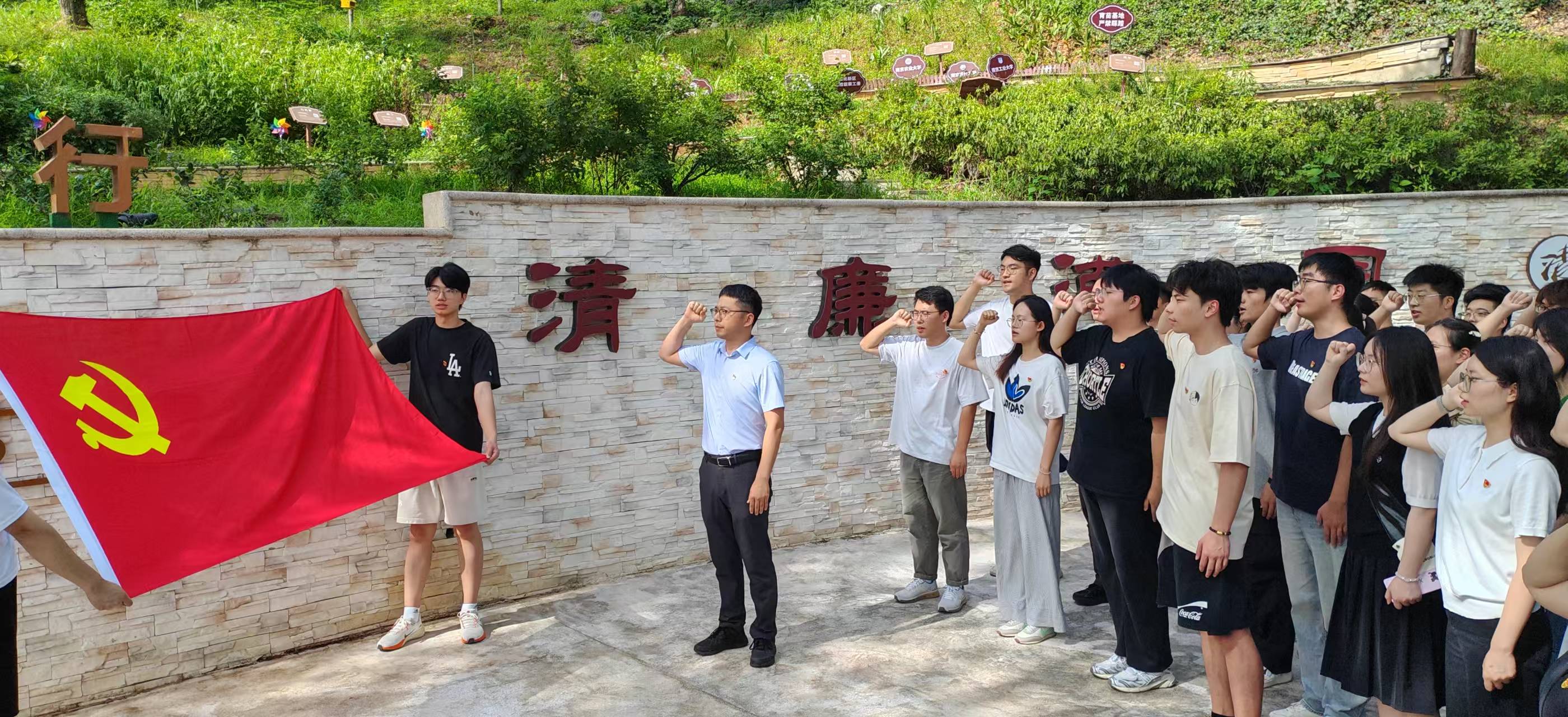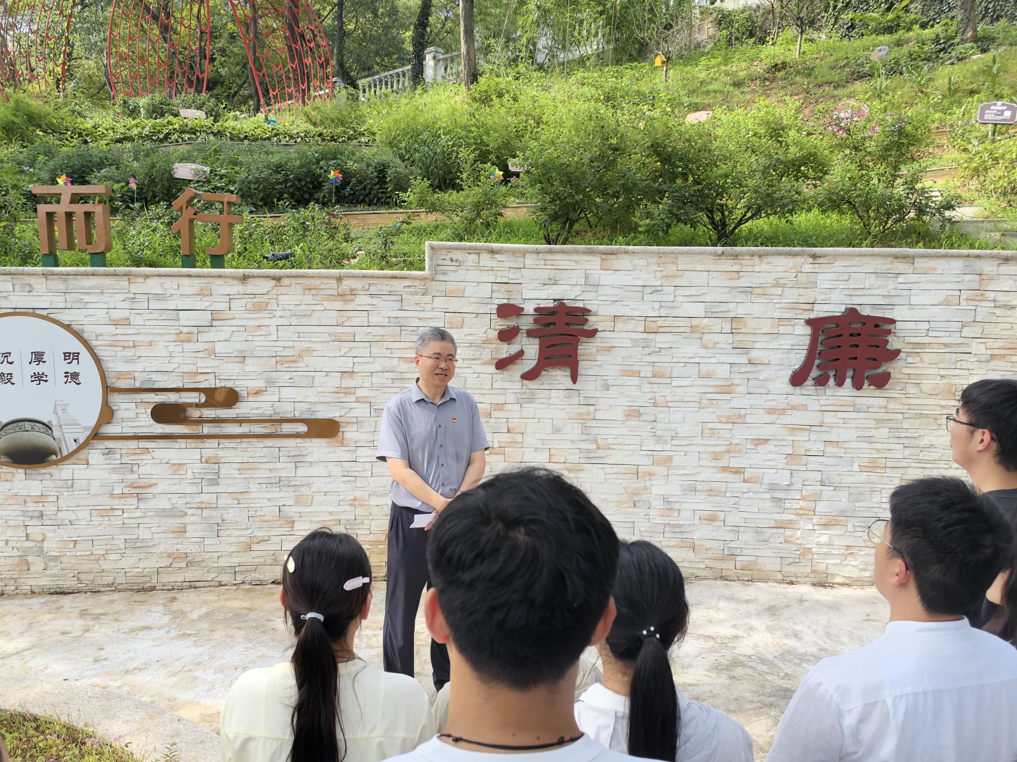 活动伊始,党委委员为新党员佩戴党员徽章,党徽闪耀,赋予新党员责任与信仰。随后,众人参观时钧园,感悟时钧先生严谨治学、矢志报国的精神;步入廉洁文化教育长廊,以清廉故事为镜,筑牢思想防线。