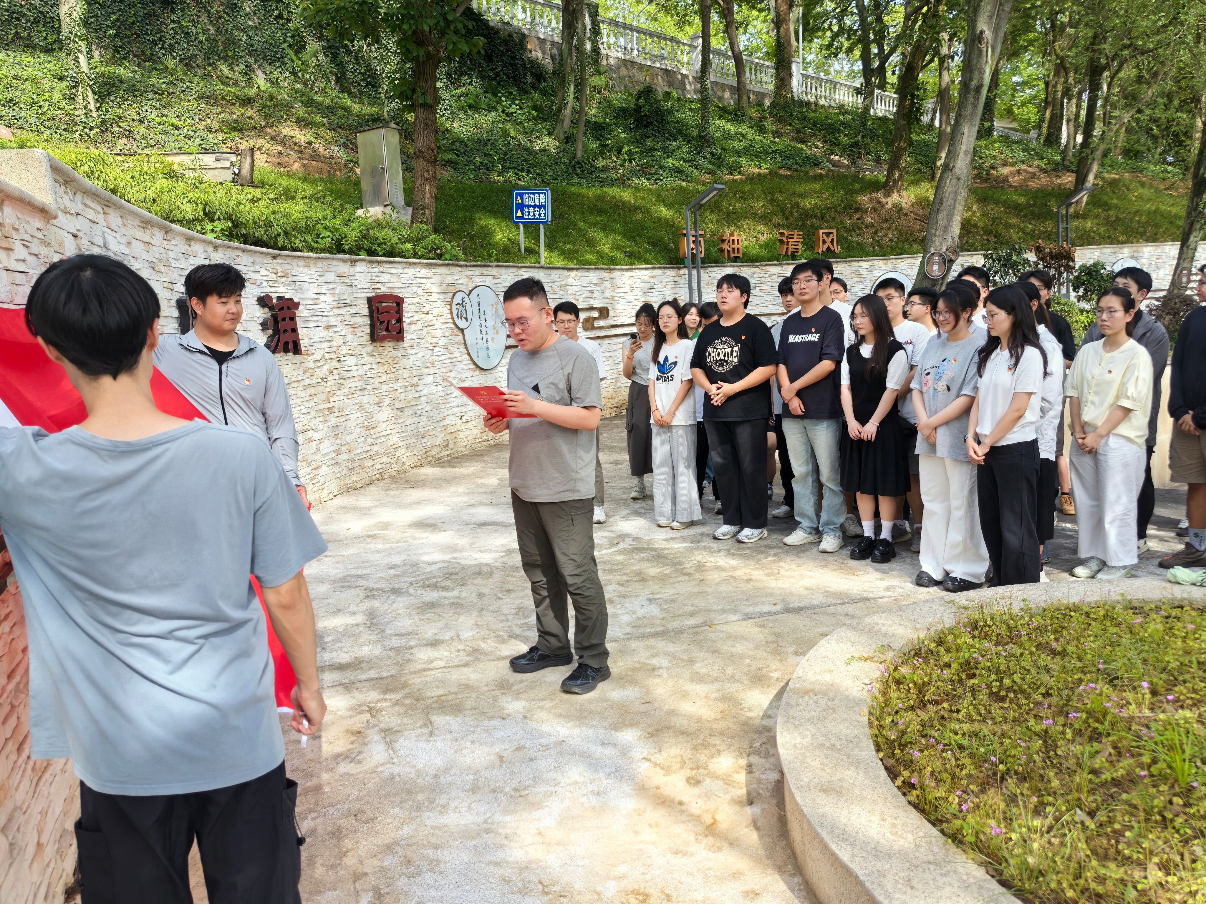 在清廉浦园广场,新党员面对鲜红党旗庄严宣誓,声音铿锵有力,许下对党的忠诚承诺。“青春献给党,奋斗正当时!”真情告白环节,每位新党员们以一句肺腑之言抒发报国之志。新党员代表郑重签名,铭刻奋斗决心。
