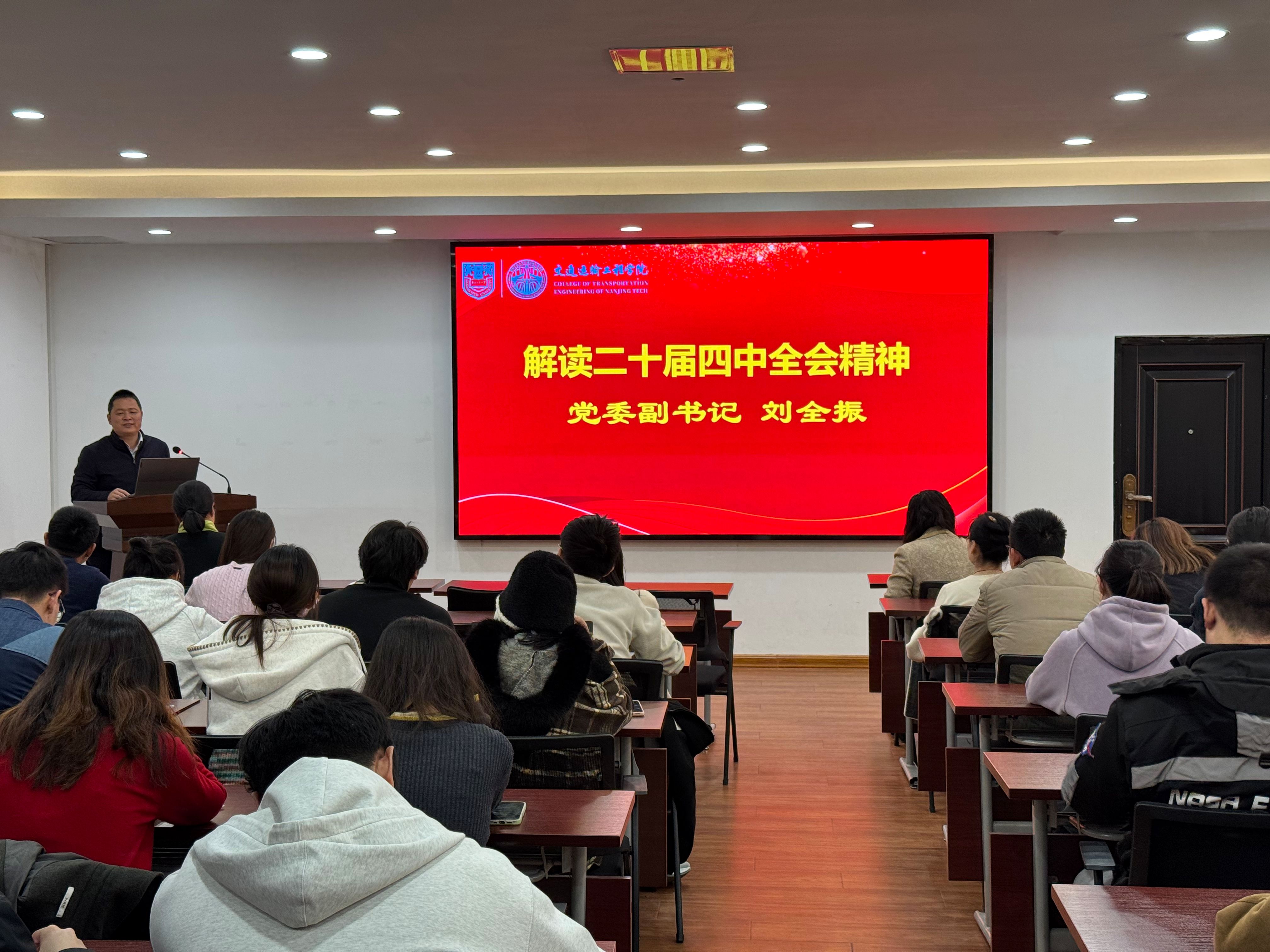 刘全振带领大家解读二十届四中全会精神,指出要以全会精神为指引,筑牢党组织战斗堡垒,完善支部建设机制,推动党建与学院发展同频共振。
