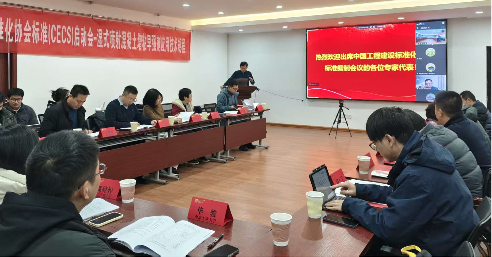 2026年1月27日上午,公司组织各主编、参编单位在南京顺利召开了中国工程建设标准化协会标准《湿式喷射混凝土增粘早强剂应用技术规程》编制组成立暨第一次工作会议。会议由中国工程建设标准化协会防水防护与修复专委会副秘书长王永海主持,公司副经理吴志坚教授出席并致欢迎词。