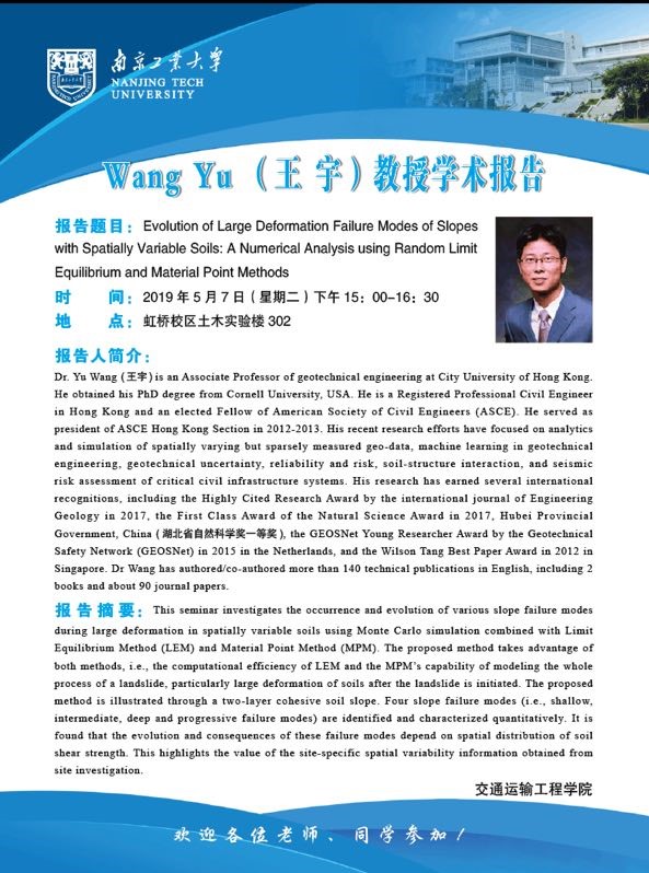 学术报告:Evolution of Large Deformation Failure Modes of Slopes with Spatially Variable Soils: A Numerical Analysis using Random Limit Equilibrium and Material Point Methods