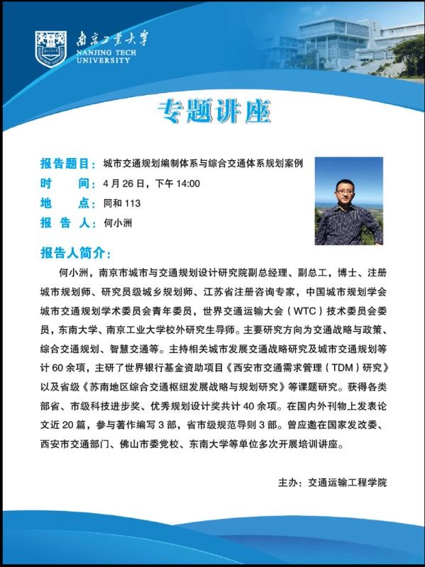 学术报告:城市交通规划编制体系与综合交通体系规划案例