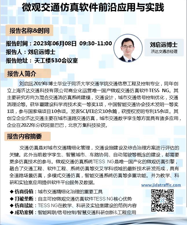 学术报告:微观交通仿真软件前沿应用与实践