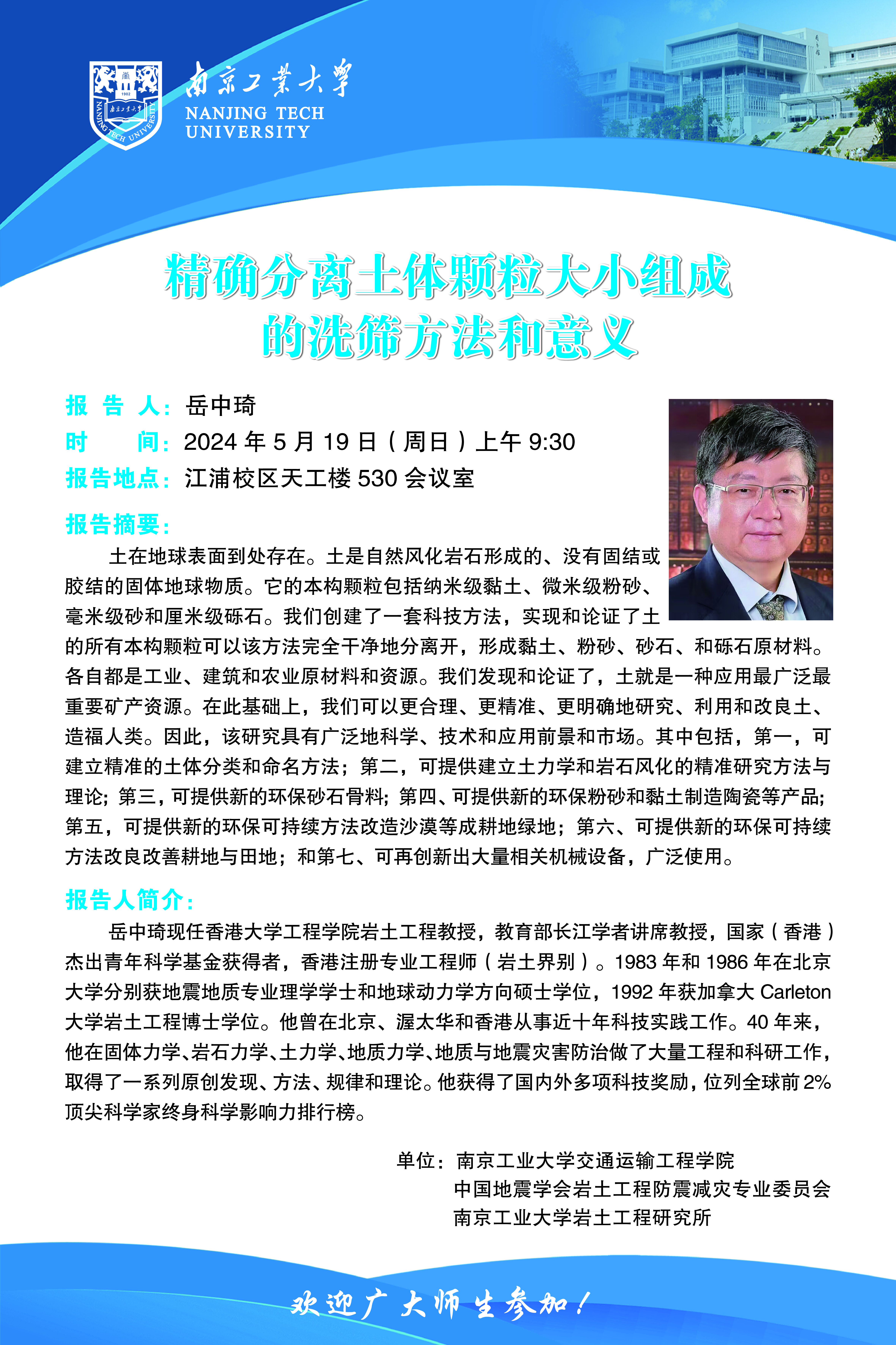 学术报告:精确分离土体颗粒大小组成的洗筛方法和意义