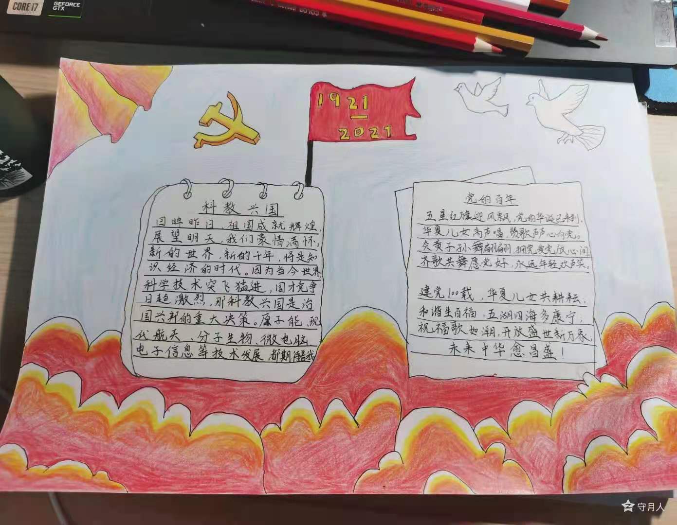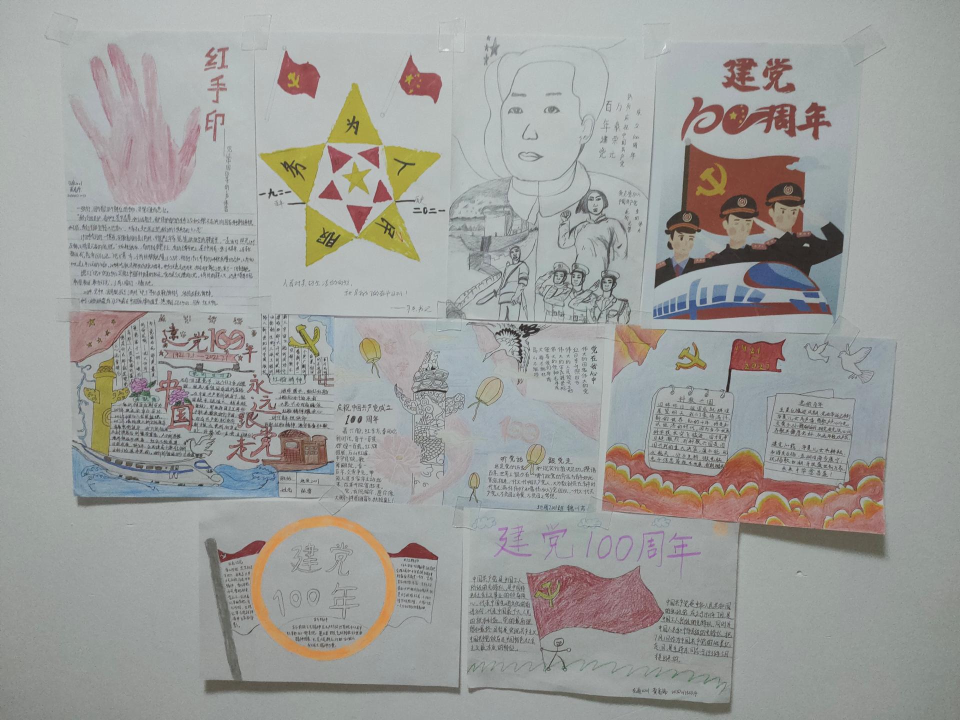 经过前期深入宣传,同学们积极参与,纷纷创作出优秀的主题作品,如党史教育海报绘画、党史英雄人物绘画等庆祝建党100周年。经师生们精心评审,对优秀作品进行展示和表彰。