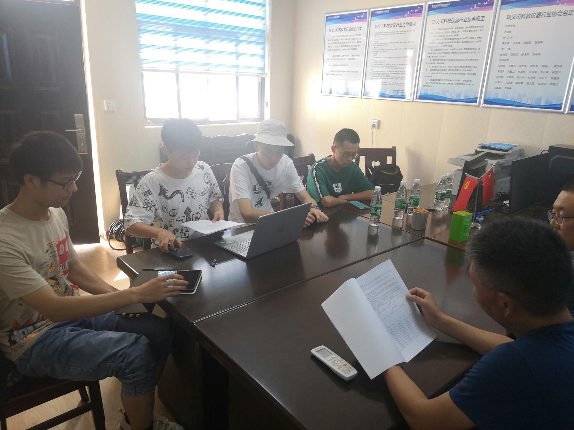 实践团队在村委带领下参观调研了村内支柱产业链模范企业予华科教仪器厂,充分了解脱贫政策、方案和具体做法。实践团队还走访了其他三家小微企业,同时采访了“感动巩义十大人物”在内的牛世权、张天顺等几位脱贫攻坚优秀代表。目前整个英峪科教仪器产业链的经济规模有近两亿元,可向社会提供1000个就业岗位,实践团就精准扶贫项目推动老员工基层就业和村委会及企业负责人进行深度探讨。