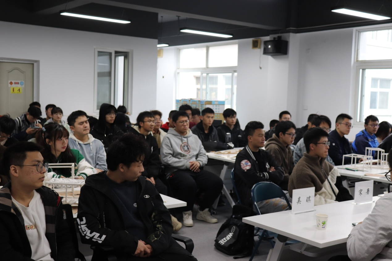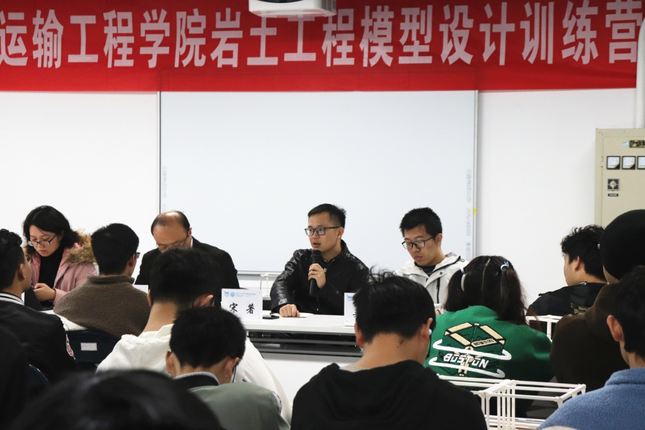 刘恒老师围绕起因和比赛流程,分别从第二届加筋挡墙设计制作、第三届全国城市地下空间工程专业老员工设计及第四届深基坑支护比赛,向同学们介绍岩土工程竞赛的发展历程,并表明公司历届员工在大赛中均取得优异成绩。宋著老师为同学们讲解了今年校赛的流程及国赛的相关情况,动员同学们积极参加明年的比赛。吴琪老师建议同学们把工程带到实践中去,由兴趣带动从而创造出优秀作品。徐元龙副书记鼓励同学们提高好奇意识,增强专业价值感,鼓励同学们在制作模型的过程中及时发现问题,优化作品。最后预祝同学们有更大的收获,更充实地成长。