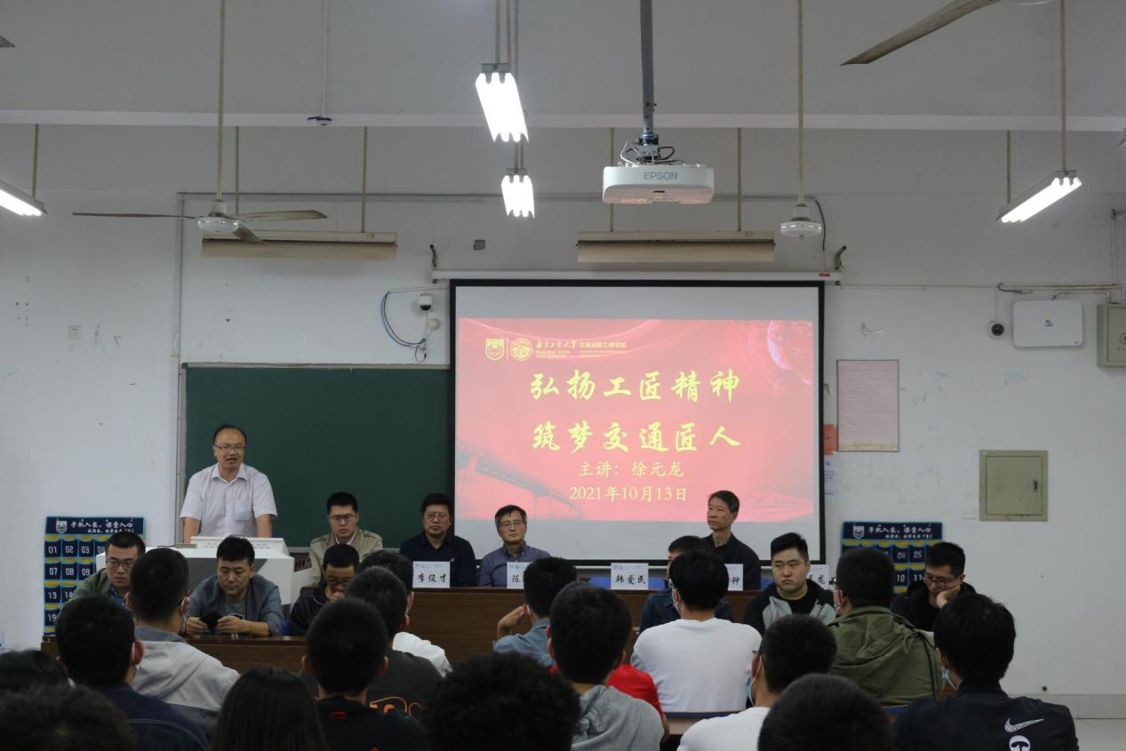 徐元龙老师以“弘扬工匠精神,筑梦交通匠人”为主题引领大家秉承新时代工匠精神,深入理解并践行工匠精神内涵,激励自己不断奋发上进,精益求精。