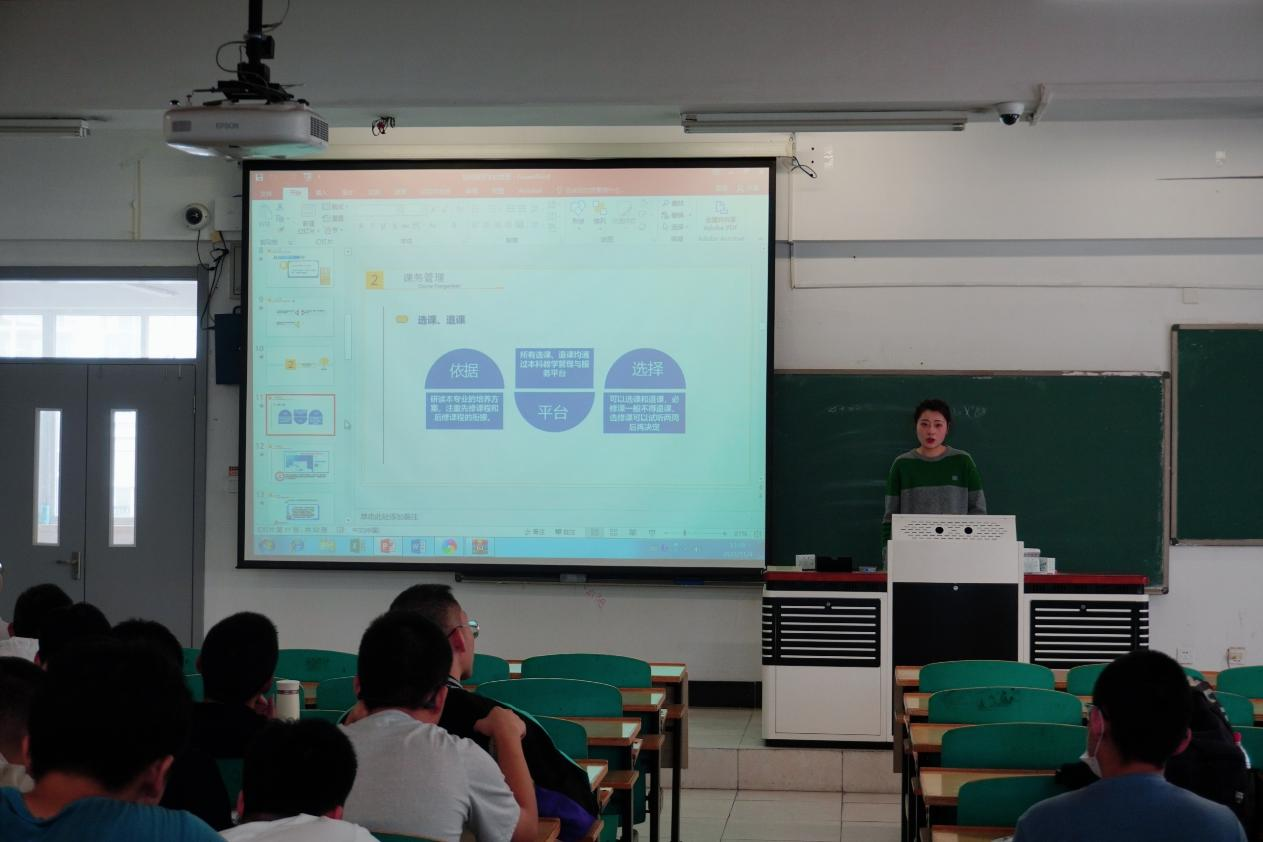 公司教学秘书王燕凝老师将本科培养方案进行解读,并对同学们如何使用教务系统做出指导。另对员工手册上的学籍管理规定、学分管理规定、学位授予细则等内容做了详细的指导说明。
