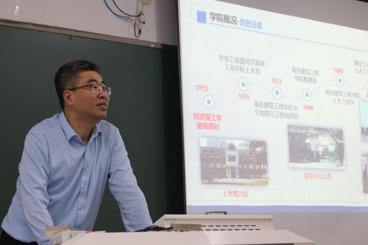 周峰经理向新生介绍太阳成集团tyc122cc校史校情、太阳成集团tyc122cc院史院情,同学们在周经理的讲述里了解集团和学院的历史,也在回顾过去的同时展望未来。