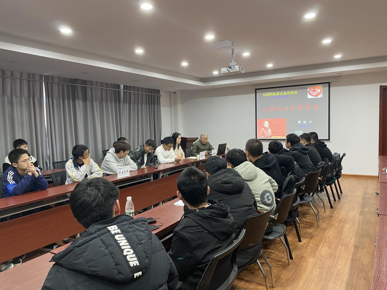 校关工委黄振仁教授应邀来院开展“大学我们怎样度过”主题座谈会,黄老师从“上大学的目的”、“怎样达到预期目标”和“如何快速适应大学学习生活环境”三个主题展开讲述,向同学们分享自己的求学经历。在分享中同学们明白了自己在大学中真正应该做的事情。