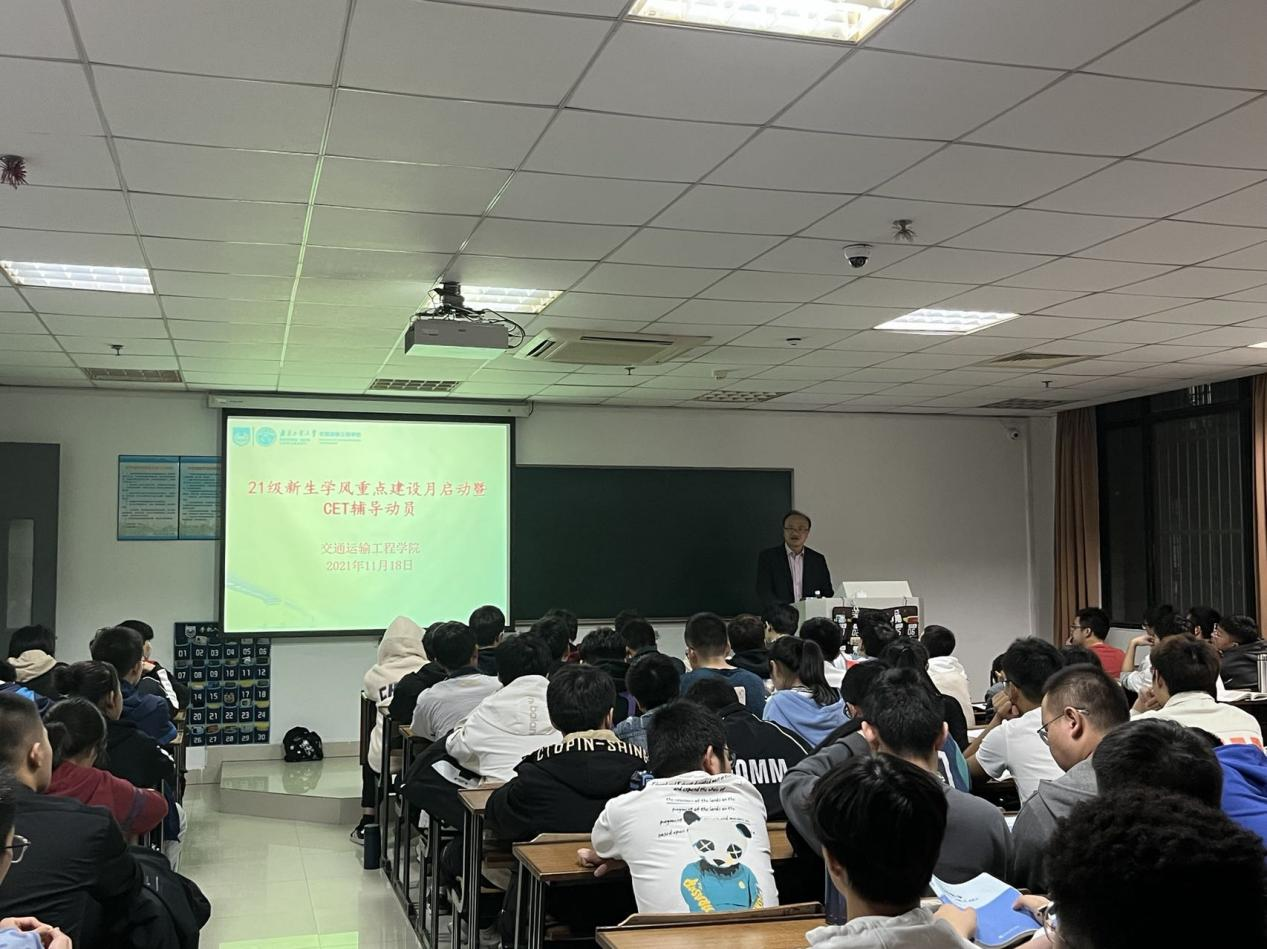 临近英语四级考试,学院为让同学们适应题型掌握技巧,取得优异的成绩,特召开“英语四级辅导动员大会”,交通1902温鑫宇向大家分享复习四级及高分通过考试的经验。