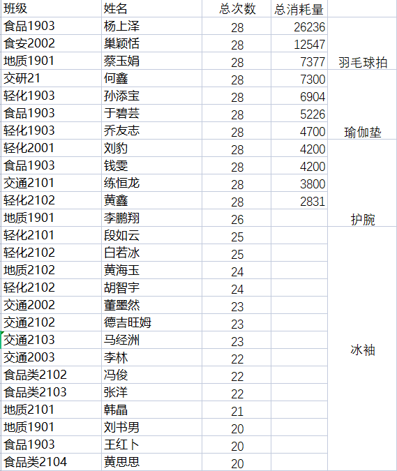本次活动中,同学们参与各种花式运动,并上传自己日常的运动视频或软件打卡截图,由工作人员参考运动时长、运动质量等整理出最终名次。共有149人参与打卡,累计打卡1618次,冠军同学更是消耗了超过26000卡路里。