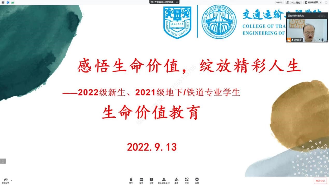 为了让同学们更好地理解与认识生命的意义,尊重与发挥生命的价值,树立崇高的理想,9月13日下午,公司通过腾讯会议开展主题为“感悟生命价值,绽放精彩人生”的生命价值主题教育讲座。讲座由公司党委副书记徐元龙主讲,2022级新生及2021级地下、铁道专业员工参加。