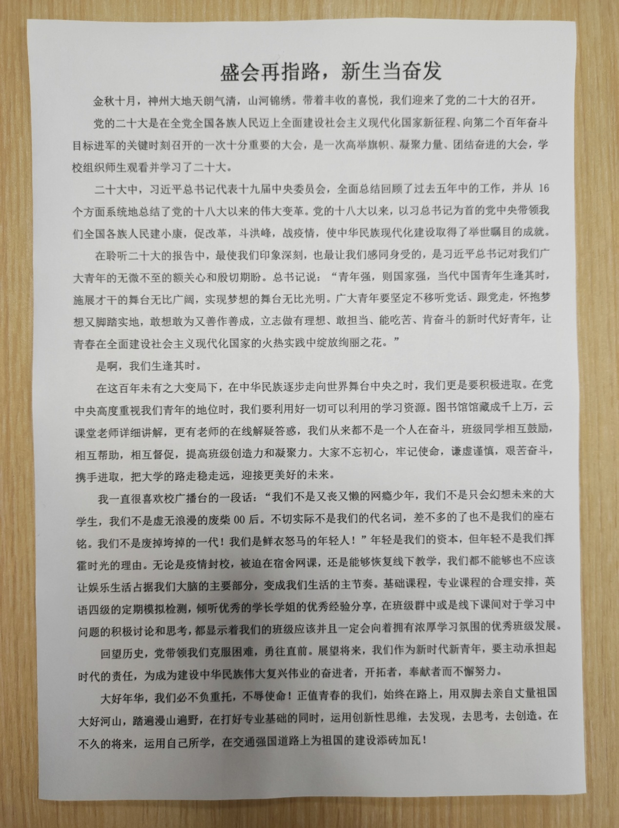 在团支书带领下,同学们认真重温了习近平总书记的二十大报告视频,呼吁大家要不断从红色精神谱系中汲取智慧和力量,发扬红色传统,赓续共产党人的精神血脉。在比赛中,此次作文紧紧围绕“学习二十大 奋进新征程”主题,紧密结合中国共产党成立101周年以来走过的光辉历程,地下2201全体同学积极参与,争相递交自己的作品,并面向全班展示,挑选出好词好句后,全体同学互相交流评鉴,各抒己见,积极讨论。