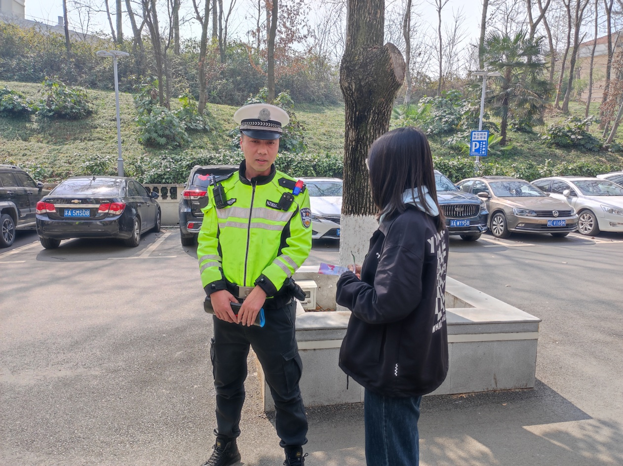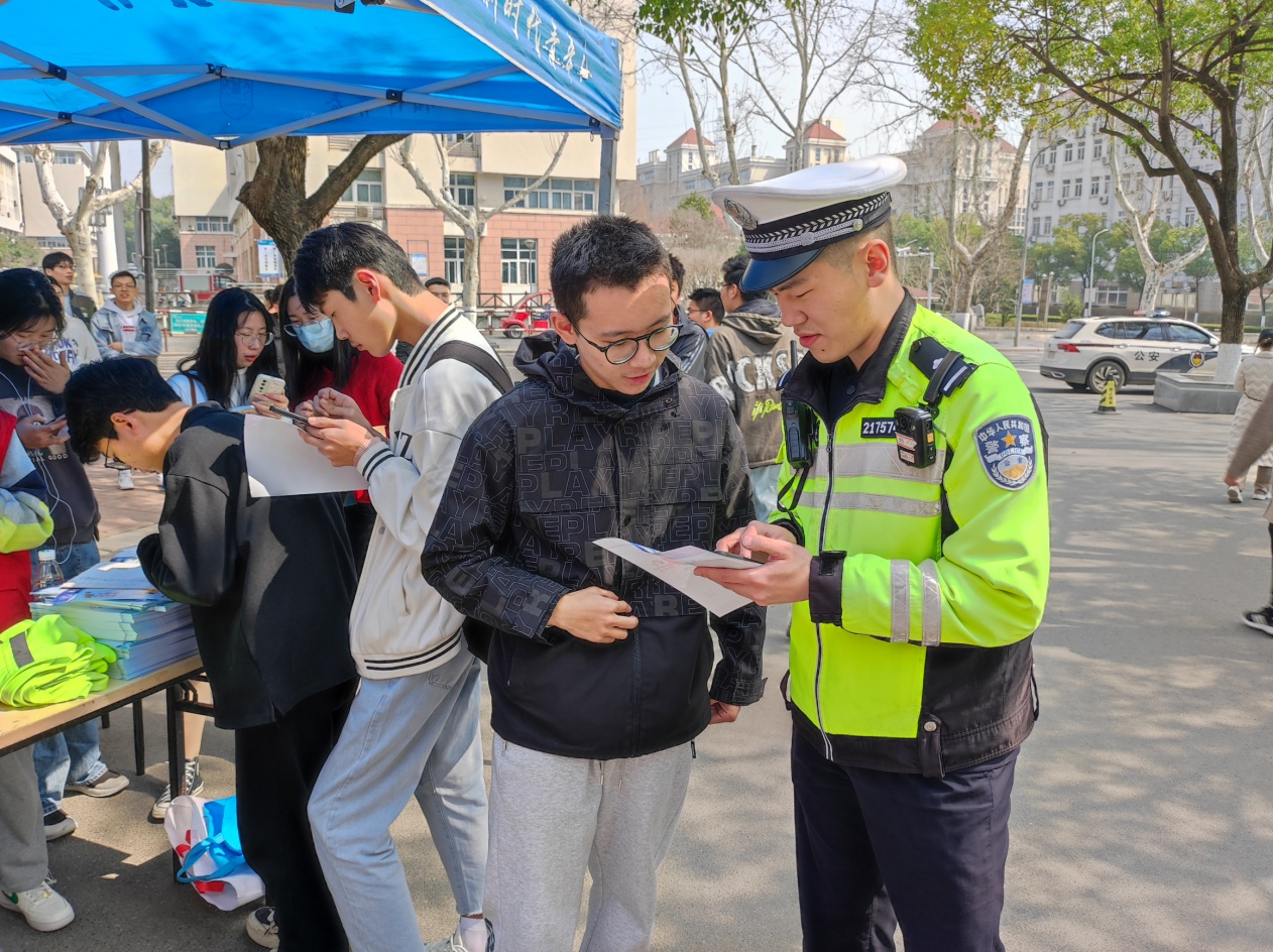 3月5日,江北新区交警支队、保卫处、太阳成集团tyc122cc联合举办“青春践行二十大 学习雷锋志愿行”交通安全宣传志愿服务。江北新区公安分局内保支队二大队教导员叶江山,江北新区交警支队一大队警官崔宇宸,保卫处副处长徐东,公司党委副书记刘全振等参加活动。