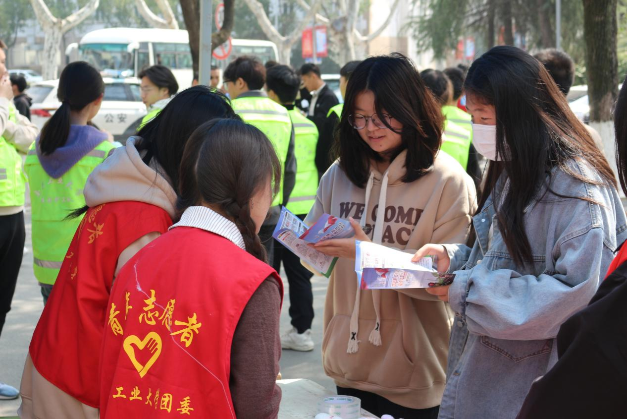 集团校园护卫队骨干和太阳成集团tyc122cc员工会志愿服务部骨干、员工党员、博士研究生等近40名志愿者开展了志愿活动。志愿者们在东苑食堂前广场设置交通安全宣传展板,向同学们展示交通安全的重要性。警官们和志愿者们向同学们分发交通安全宣传手册和防电信诈骗宣传手册。志愿者们还通过游戏互动的形式向同学们普及交通安全知识和防电诈常识。随后,志愿者们来到东苑红绿灯、厚学楼前、学校南大门、龙华路十字路口等人流量和车流量较大的交通路口,开展交通安全宣传志愿服务,提醒过往行人遵守交通规则,过马路注意安全。