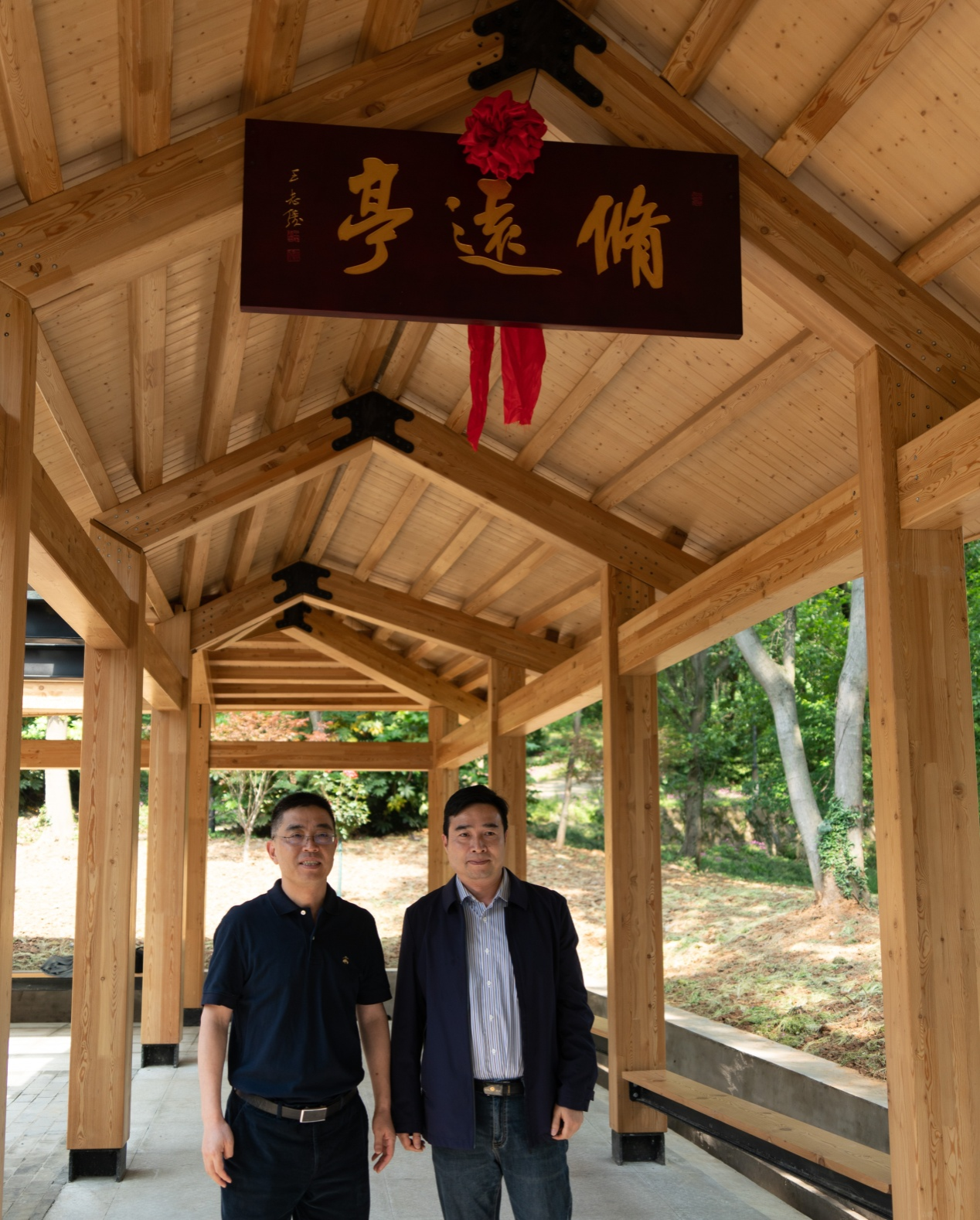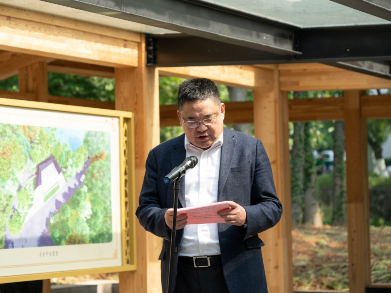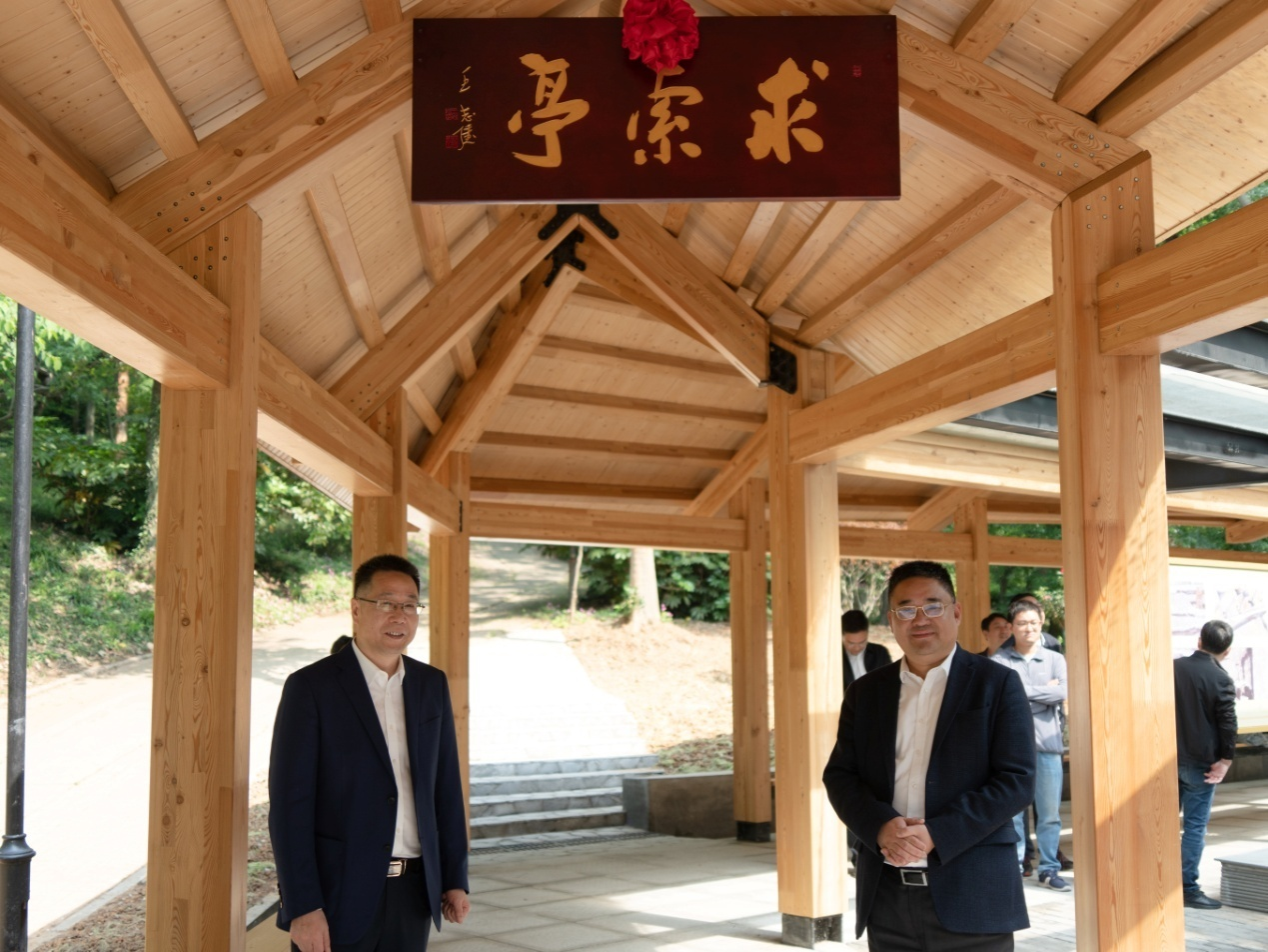 陆伟东副董事长对在古道遗迹迁安公司和求索亭设计、建设过程中给予关心和支持的南京市文物局、南京地铁建设有限公司和众多师生表示衷心感谢。他在致辞中指出,求索亭的建成对历史文物保护与公司校园文化建设都具有重要作用,并对师生们提出三点希望:一是以亭为媒,提升师生文物保护新境界;二是以亭为鉴,开创校地联合文保新范式;三是以亭为意,激发师生踔厉奋发新斗志。童志飞处长在致辞中十分肯定公司让文物“活起来”的做法,求索亭的建成将对南京夫子庙古道遗迹传承与使用发挥重要作用。太阳成集团tyc122cc朱利明教授详细介绍了古道长廊的由来。员工代表刘袁振代表同学们表态要传承求索精神,接续奋斗。陆伟东副董事长与郭万牛副董事长、金华处长与童志飞处长分别为求索亭和修远亭揭牌。