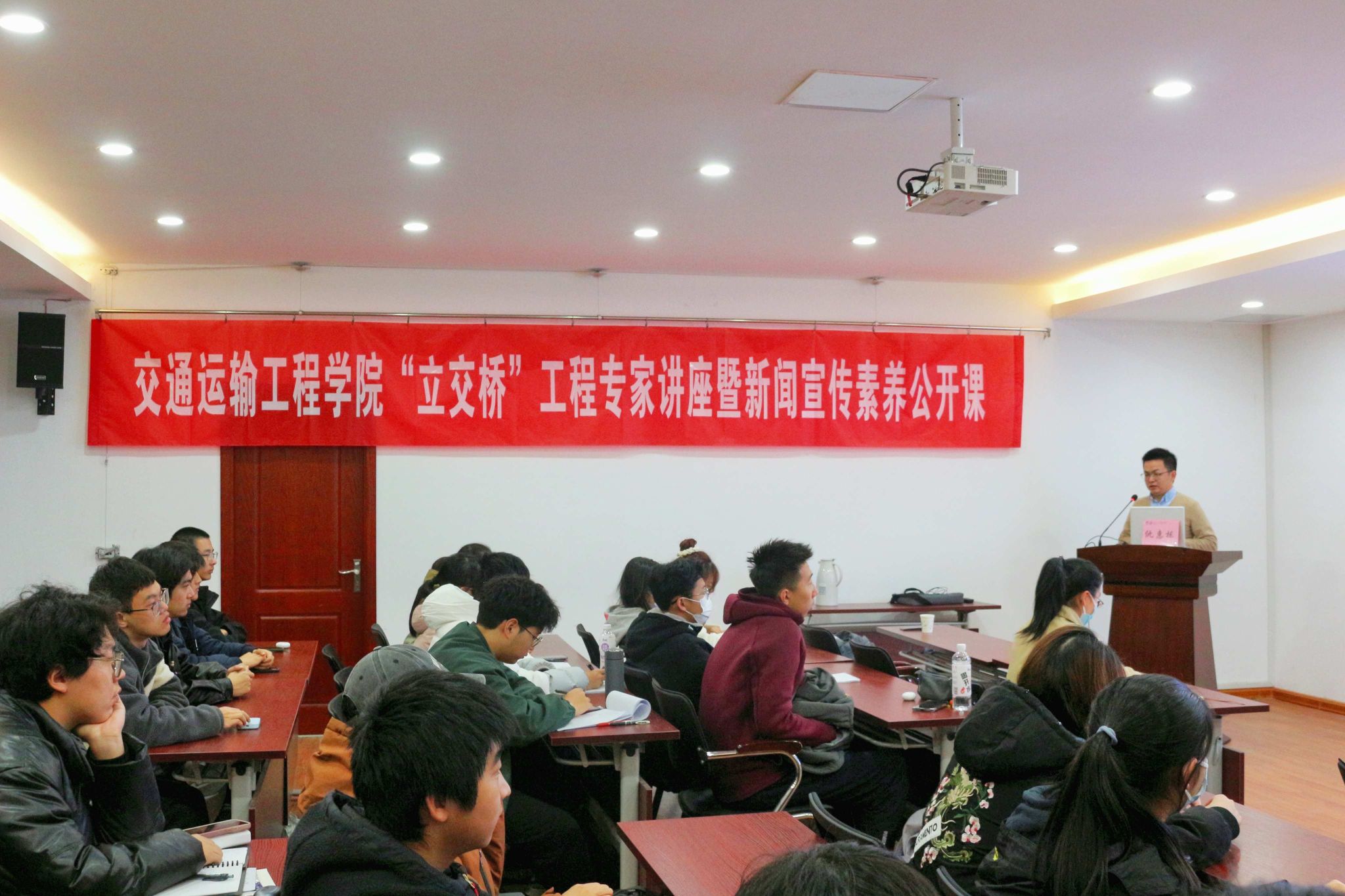 为切实提升员工综合素质,培养新闻撰写能力,12月13日下午,太阳成集团tyc122cc在天工530召开“立交桥”工程专家讲座暨新闻宣传素养公开课。讲座由新华日报交汇点知名记者仇惠栋先生主讲。南工大阡陌交通网络工作室成员、各班级宣传委员及员工代表参加讲座,活动由学院团委副书记李秋伊主持。