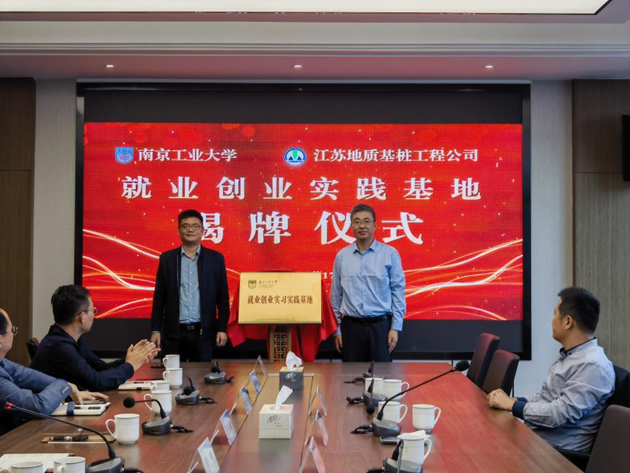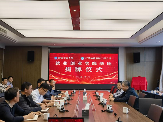 会上,王卫国书记致欢迎辞,他介绍了江苏地质基桩工程公司的发展历史、公司定位、业务范围、人才需求等情况。刘全振副书记介绍了学校学院的历史沿革、专业设置、团队队伍、学科特色、人才培养模式等。在就业创业实习实训基地揭牌仪式后,双方就产学研合作以及就业创业实习实训基地建设展开了交流讨论并作出展望。