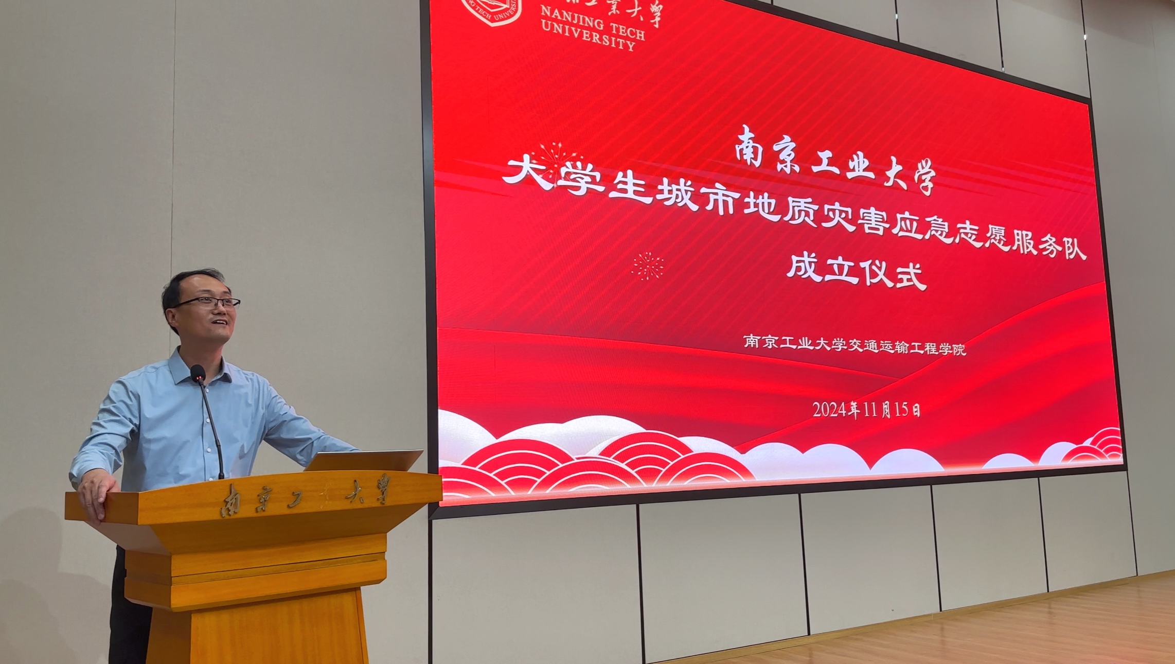 11月15日下午,公司老员工城市地质灾害应急志愿服务队成立仪式在化学学科楼四楼报告厅成功举办。省地质局第一地质大队地质灾害防治技术中心主任眭敏磊,副董事长刘大卫、员工工作处处长黎能进、团委副书记乐凤,公司党委书记许翠梅、经理周峰、副经理吴志坚出席活动,仪式由公司党委副书记刘全振主持。