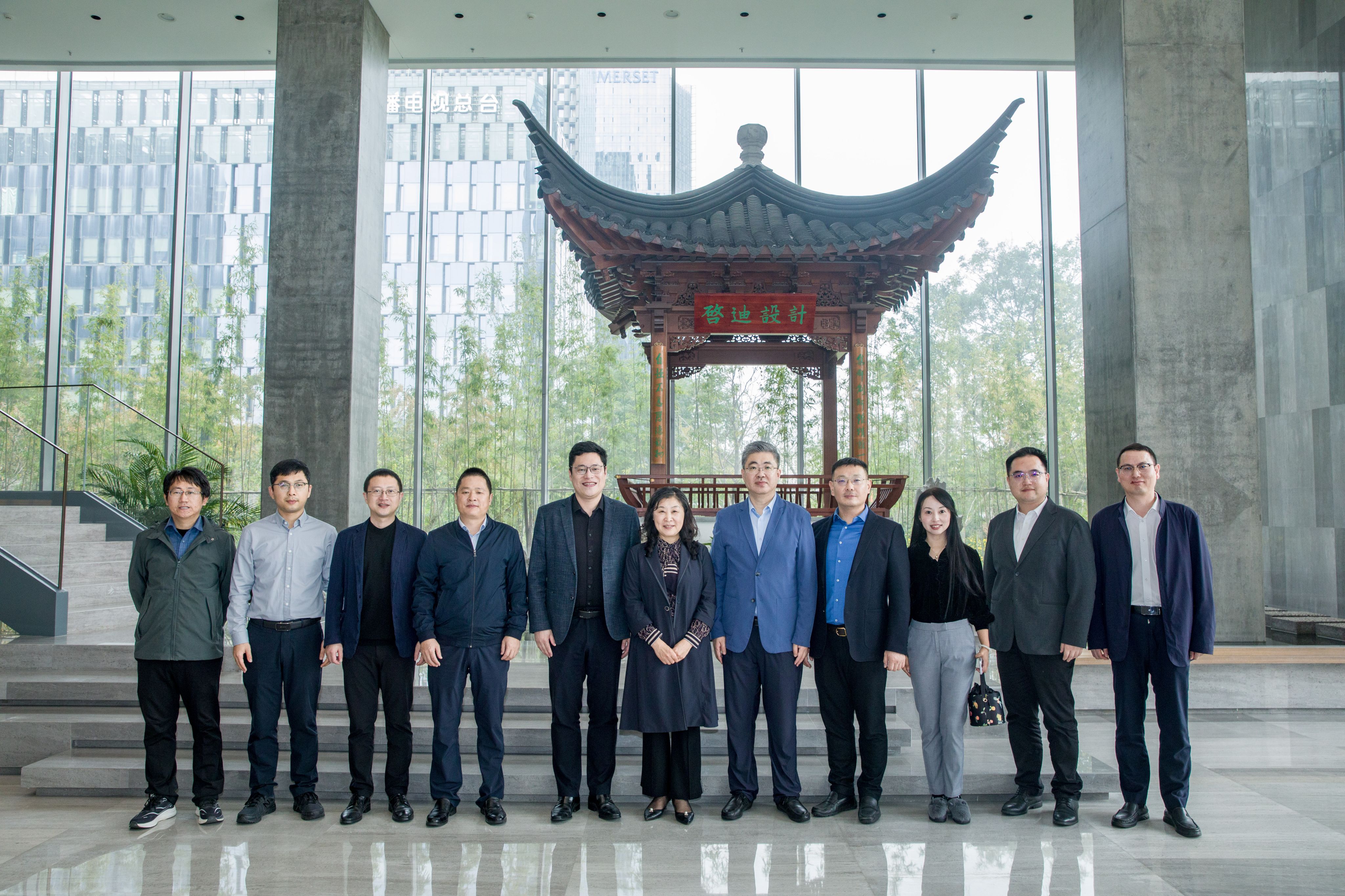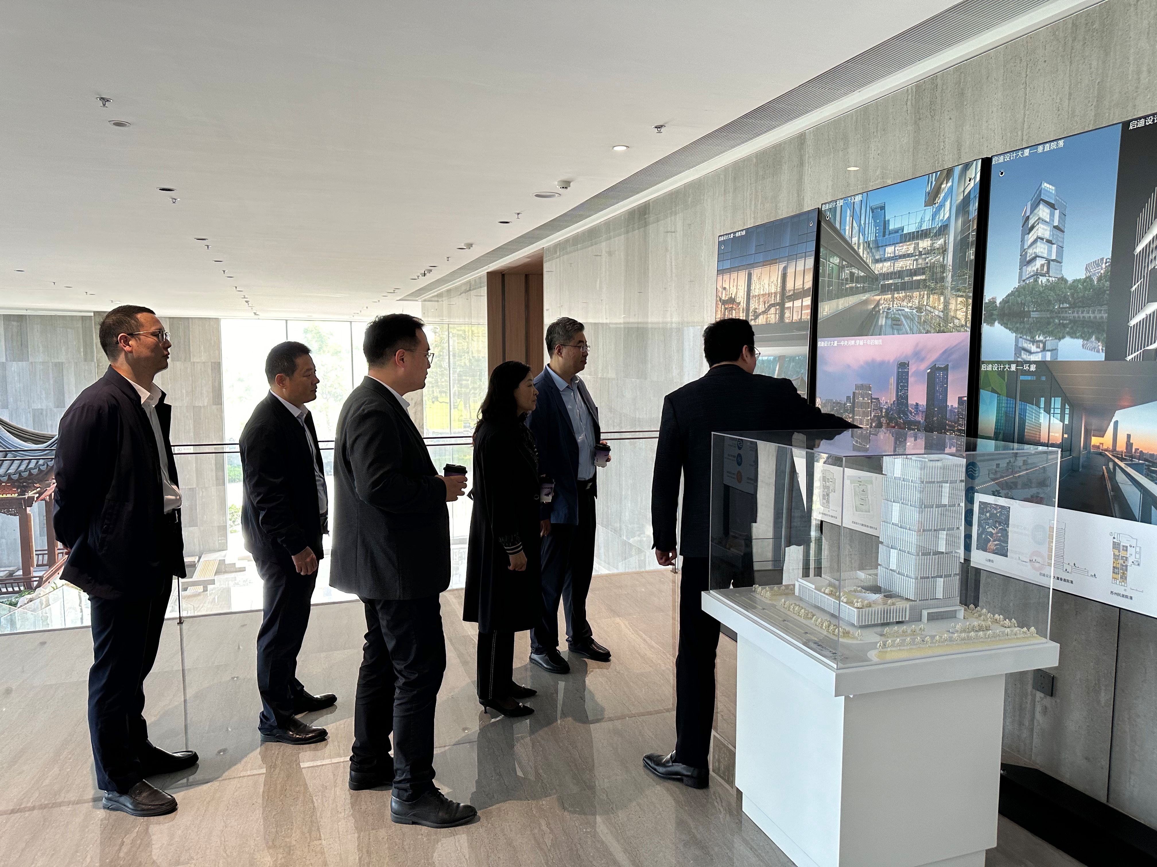 会前,学院一行在金彦等领导的陪同下参观启迪设计新总部大楼,了解企业发展历程,听取大楼的设计创新理念及历史文化传承等方面介绍。