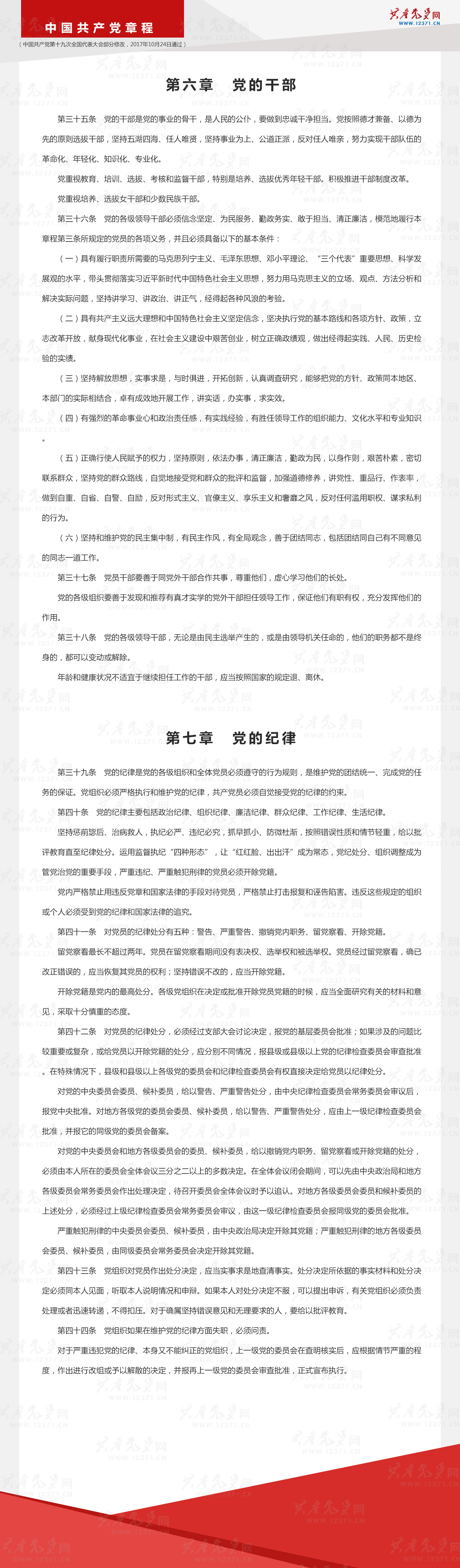中国共产党章程|第六、七章 党的干部、党的纪律