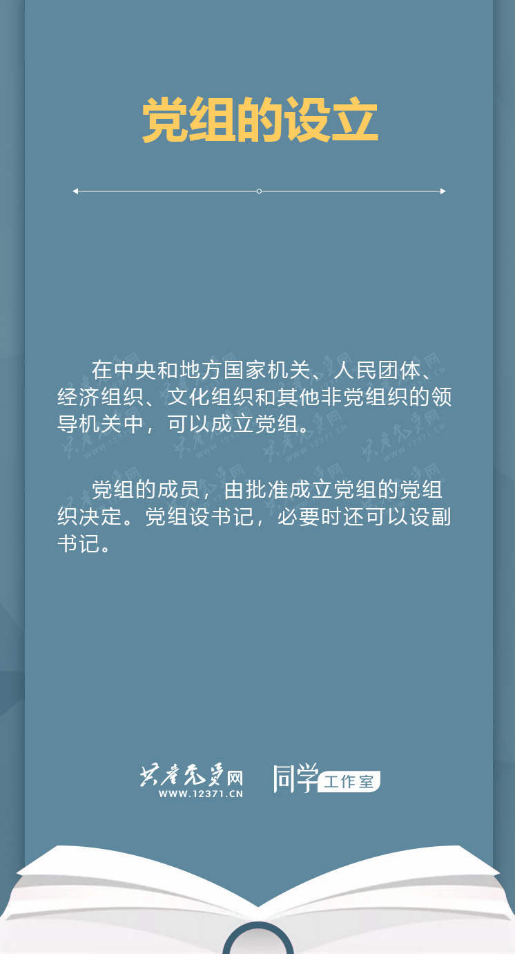 在中央和地方国家机关、人民团体、经济组织、文化组织和其他非党组织的领导机关中,可以成立党组。