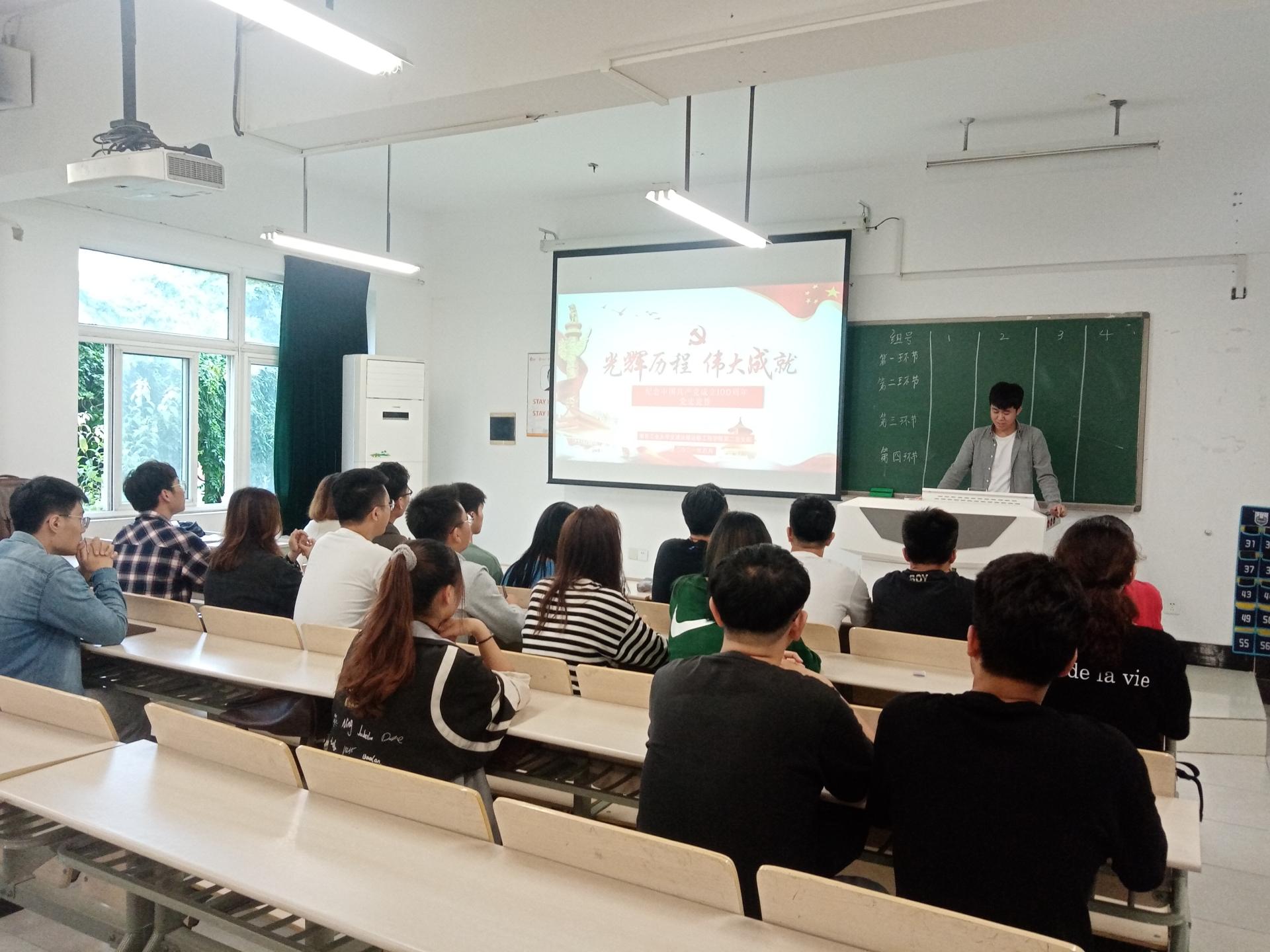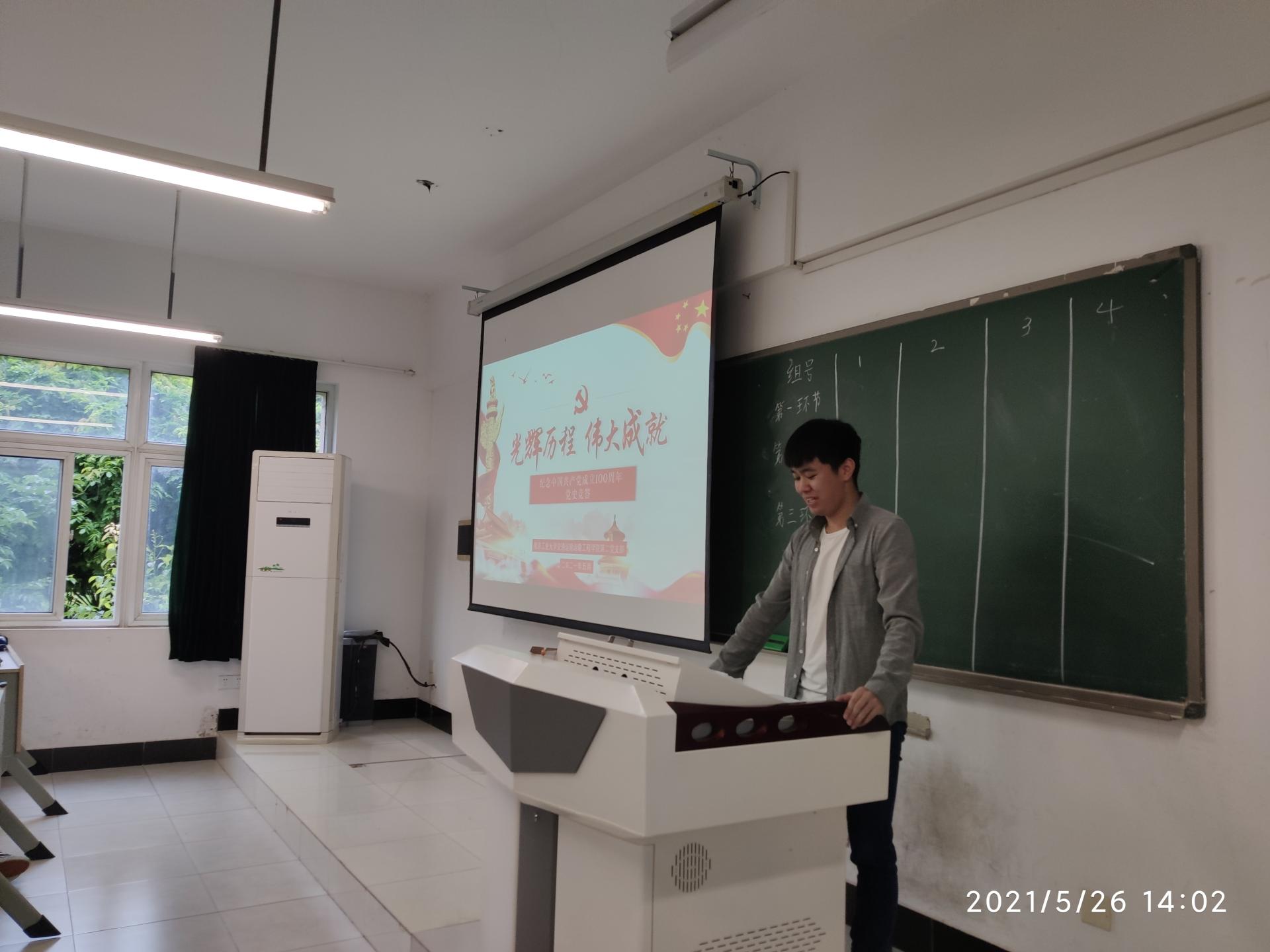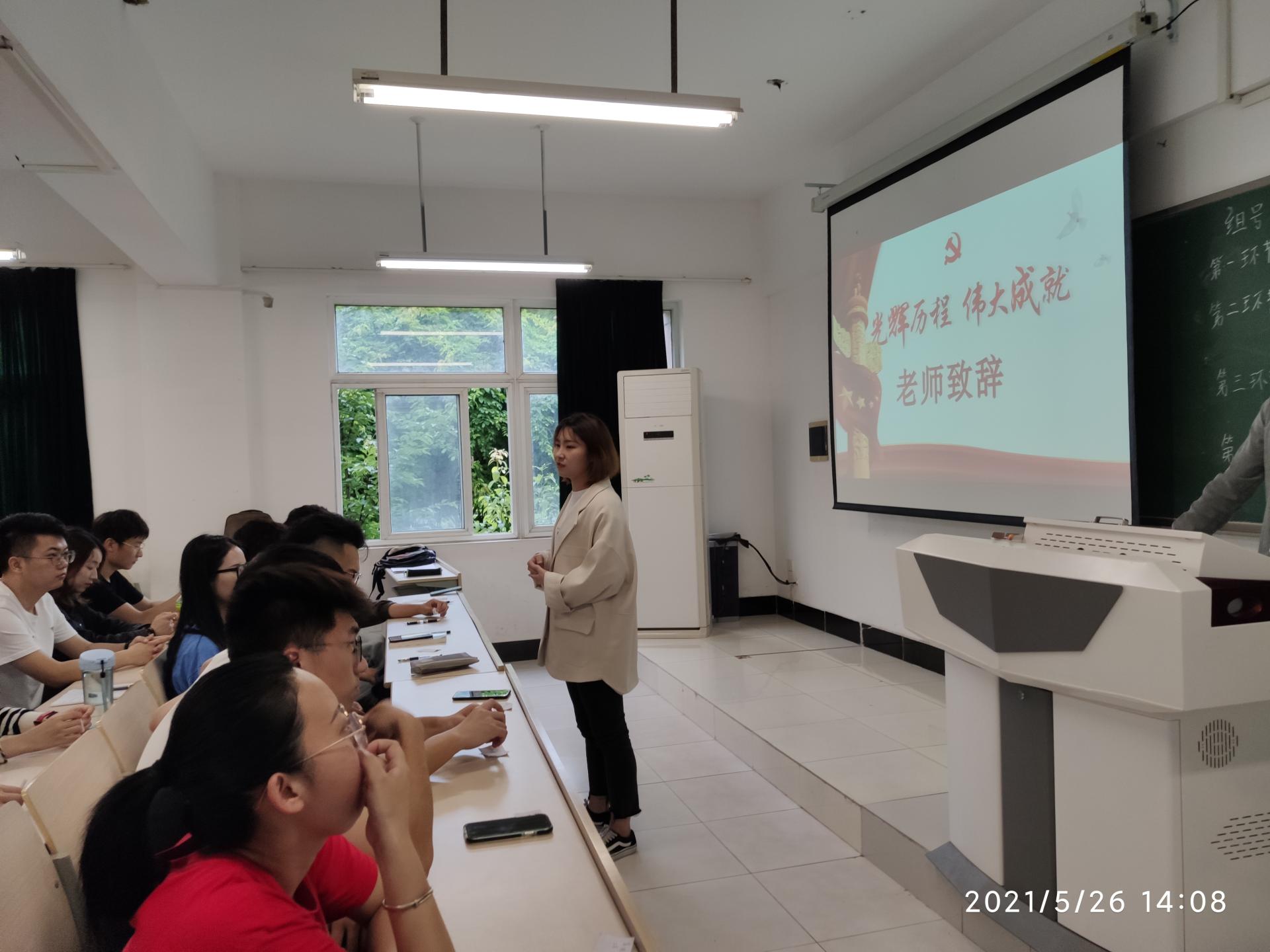 辅导员薛姣老师先发表致辞,要求党员同学带头学好党史牢记党的重要历史事迹,从党史中品读党史文化,把党员的传统文化、良好品质与实践相结合。