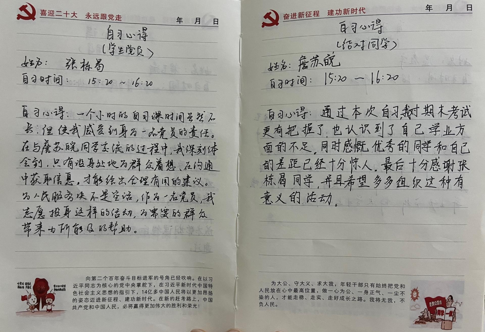 支部通过召开支部大会,讨论决定主题党日活动具体方案,在前期党员结对帮扶的基础上,根据本支部涵盖专业同学的学业情况,以必修课有重修的同学为主要对象,建立本次党日活动的学业帮扶台账。员工党员与学业困难同学共同上自习,在自习期间,结对双方从当前大学学习生活的困惑到未来的职业发展和人生规划进行交心通理、相学相长;党员同学就帮扶对象的近期学业情况、课程复习给予帮扶指导,制定具体复习计划和目标,提升复习效率,争取本学期顺利通过所有课程。党员将党日活动的体验通过思想汇报进行总结汇报,进一步提升党性修养和宗旨意识。