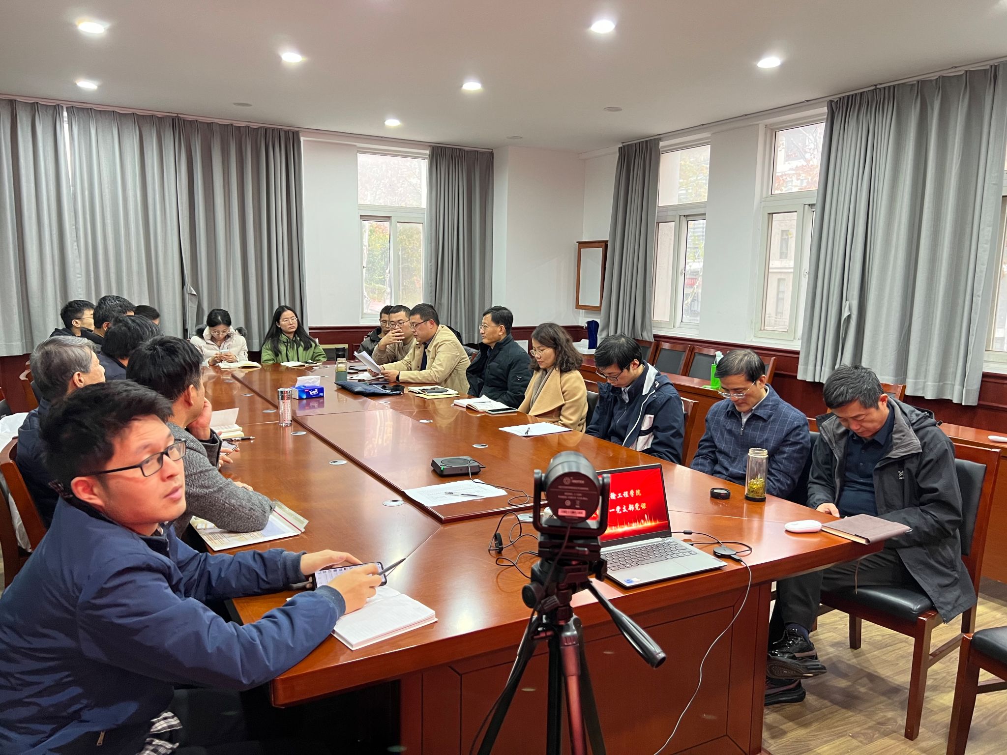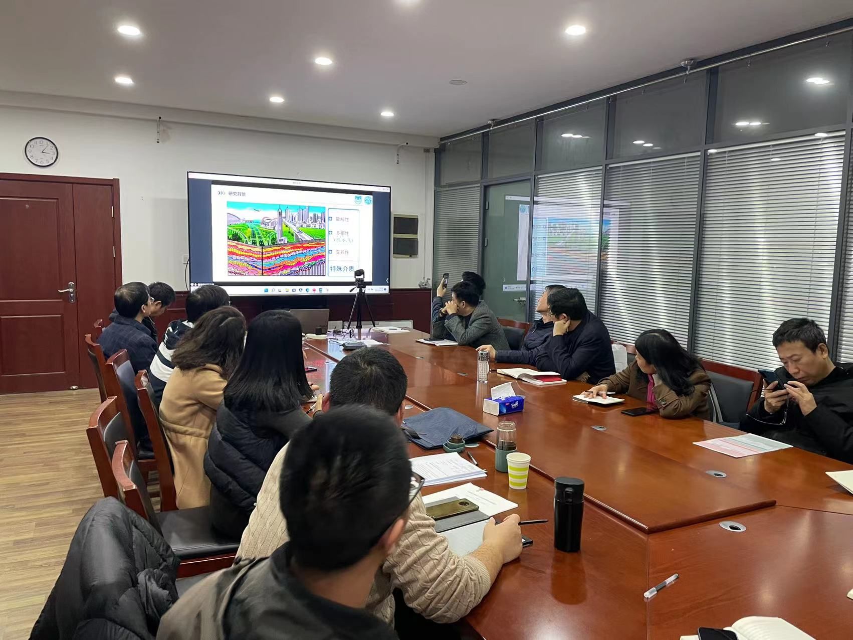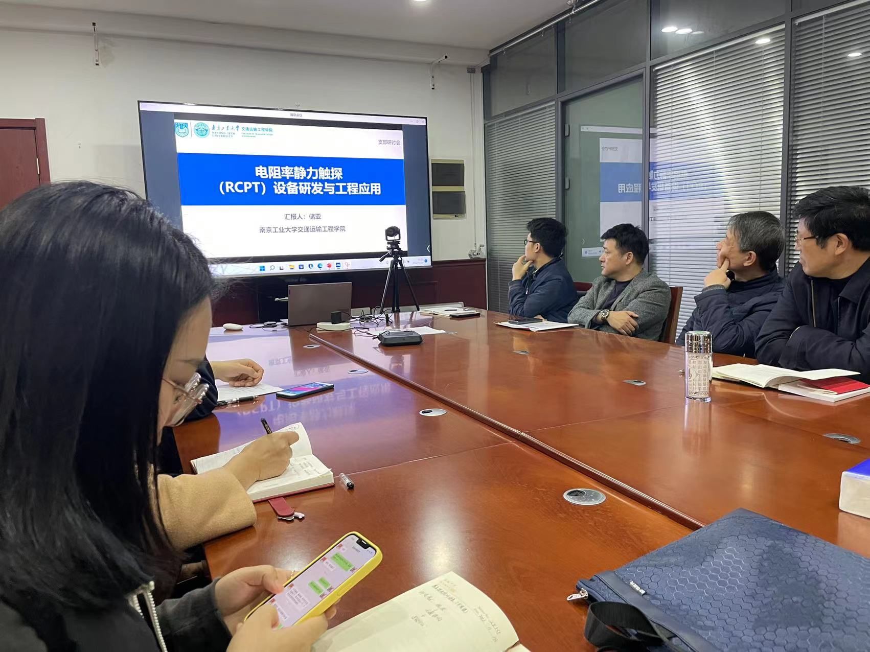 为更好的促进党员活动与教学科研的深入融合,大会接续开展关于党员活动与教学科研融合相关举措的讨论。储亚老师作题为《电阻率静力触探(RCPT)设备研发与工程应用》的报告,大家积极讨论如何加强老师之间的科研合作。