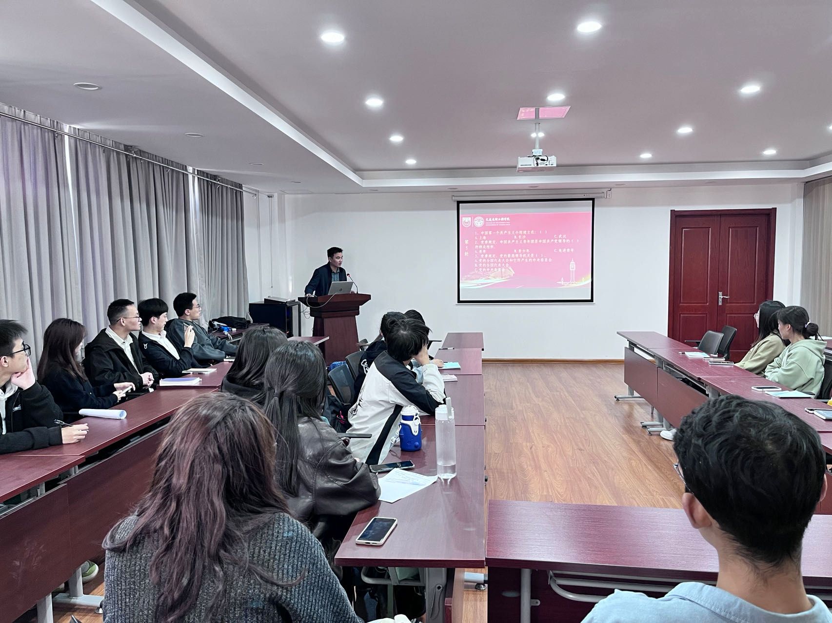 为提高支部成员对党的基本知识和党章党史的理解,活动还设置了知识竞答环节,成员们积极踊跃抢答,营造了浓厚的党史学习氛围,更激发了大家学习党史的热情。活动接近尾声,全体成员重温党的誓词,进一步加强了支部成员的使命感和责任感,擦亮入党初心,牢记入党使命。最后,支部书记张悦老师对本次党日活动进行总结,希望同学们端正入党动机,牢记初心使命,不断加强自身建设,在各项实践活动中锤炼党性,以实际行动落实好党章规定。