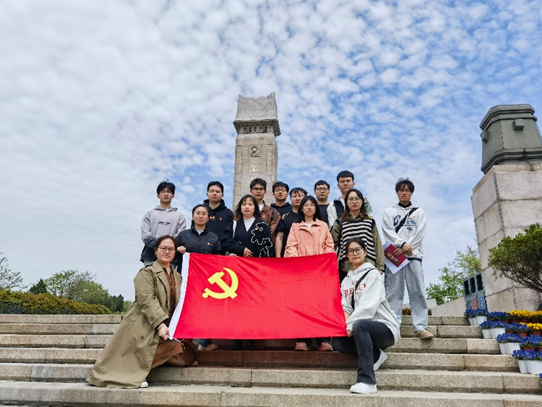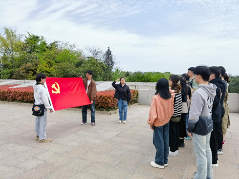 参观结束后,同学们一同前往雨花烈士纪念碑,驻足瞻仰并向烈士纪念碑敬献鲜花,回望历史,期许未来,表达对革命英烈为家国安宁奉献牺牲的无尽缅怀和崇高敬意。随后,由支部书记李秋伊老师对本次活动进行总结,带领全体党员集体重温入党誓词。伴随着铿锵有力的誓言,党员同志们在烈士碑前重温入党誓词,增强党员身份意识,筑牢忠诚信仰之基,引导支部党员立足岗位、担当作为,以实际行动践行入党誓言。