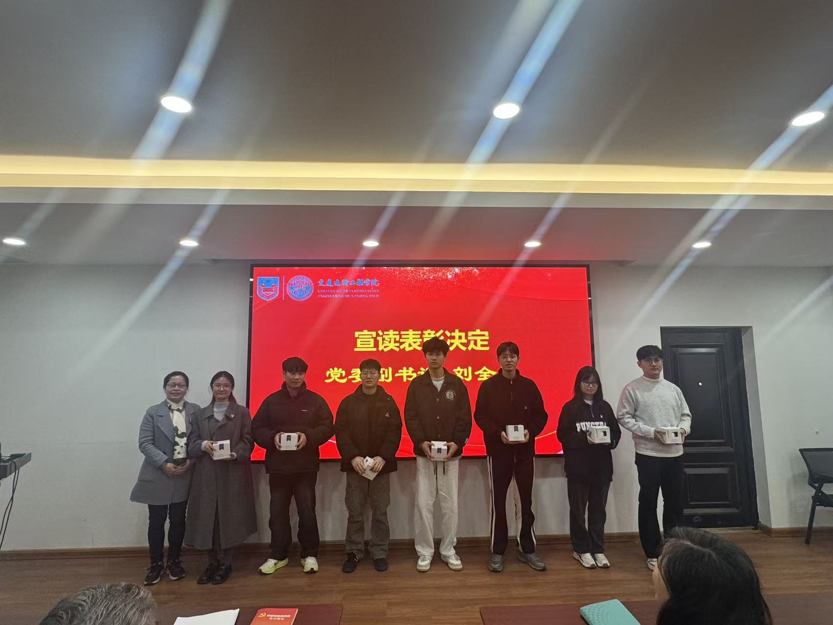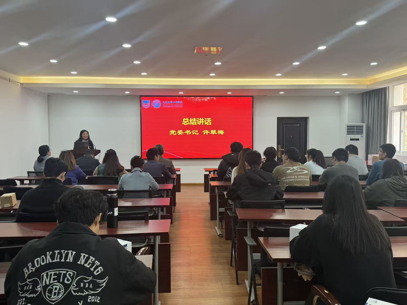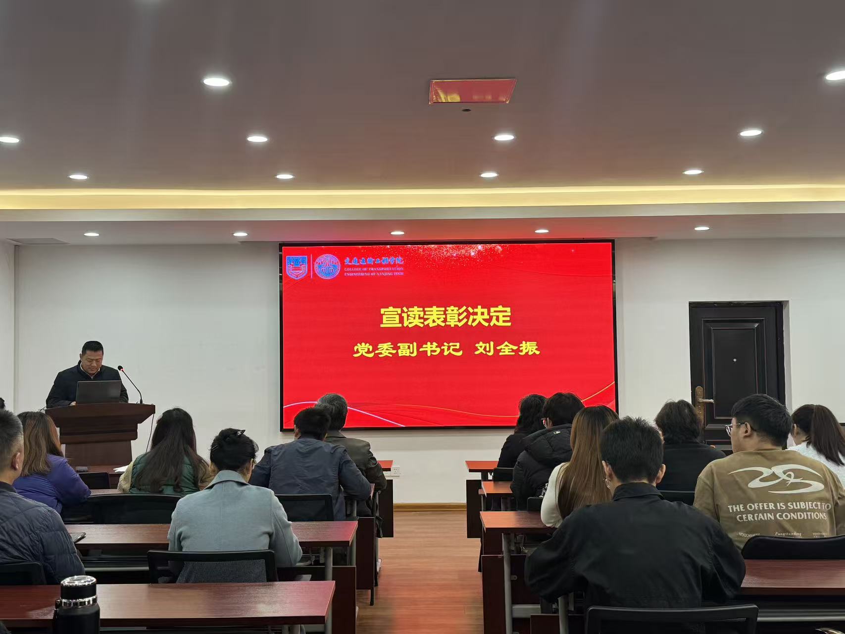 党委副书记刘全振宣读知识竞赛表彰决定,并对获奖集体和个人表示祝贺。在热烈的掌声中,与会领导为获奖代表颁奖。最后,党委书记许翠梅作总结讲话,勉励全体党员深入学习贯彻党的二十届四中全会精神,坚定理想信念,强化使命担当,在学习和工作中发挥先锋模范作用,为推动学院高质量发展贡献力量。