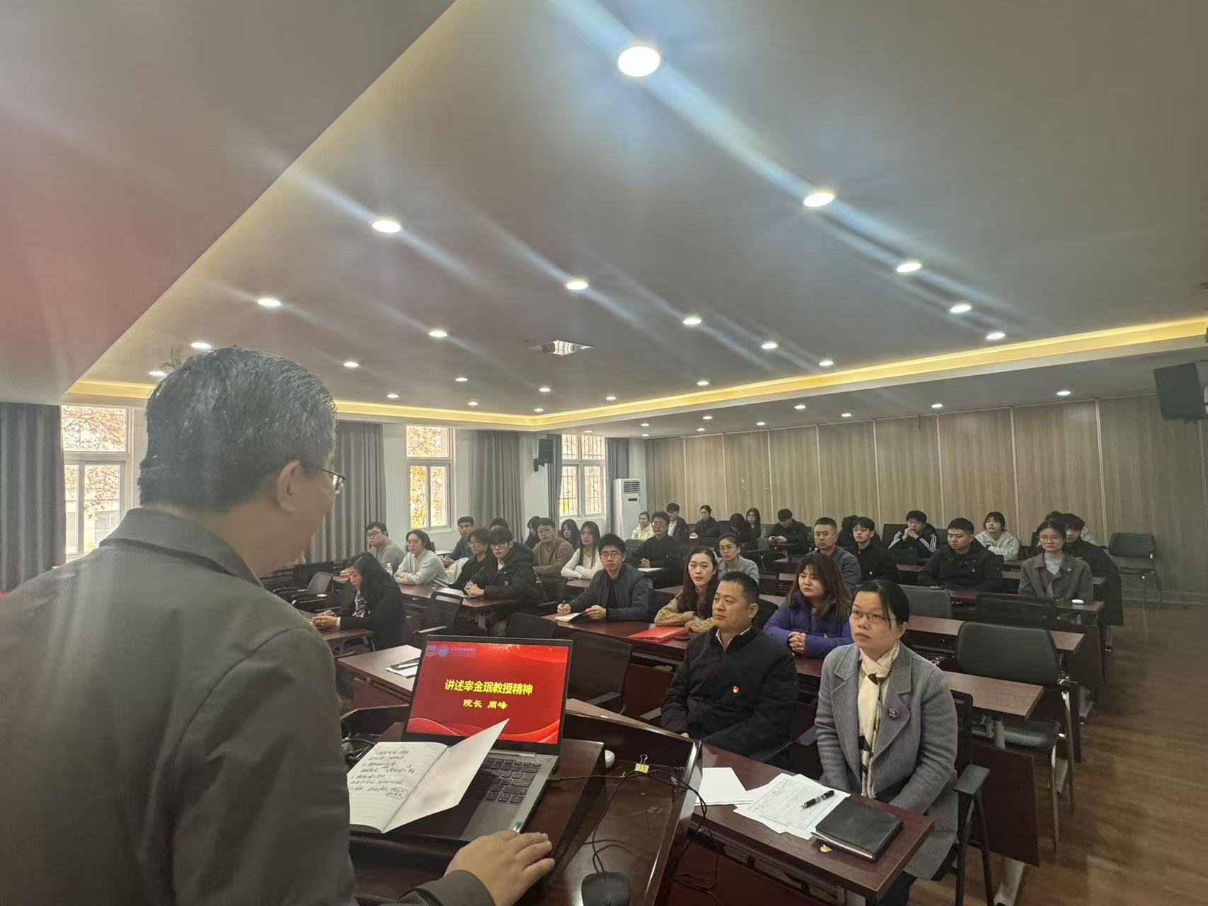 老党员代表、研究生第二党支部朱晓彤同志发言,分享入党初心与成长感悟。新党员代表、铁道地质防灾专业党支部崔可宇同志表态,将以实际行动践行誓言,争做合格党员。经理周峰声情并茂地讲述了宰教授生前事迹,希望大家学习宰教授艰苦拼搏的治学态度、尊师重教的生活作风,精益求精的科研精神,激励师生见贤思齐、奋发有为。