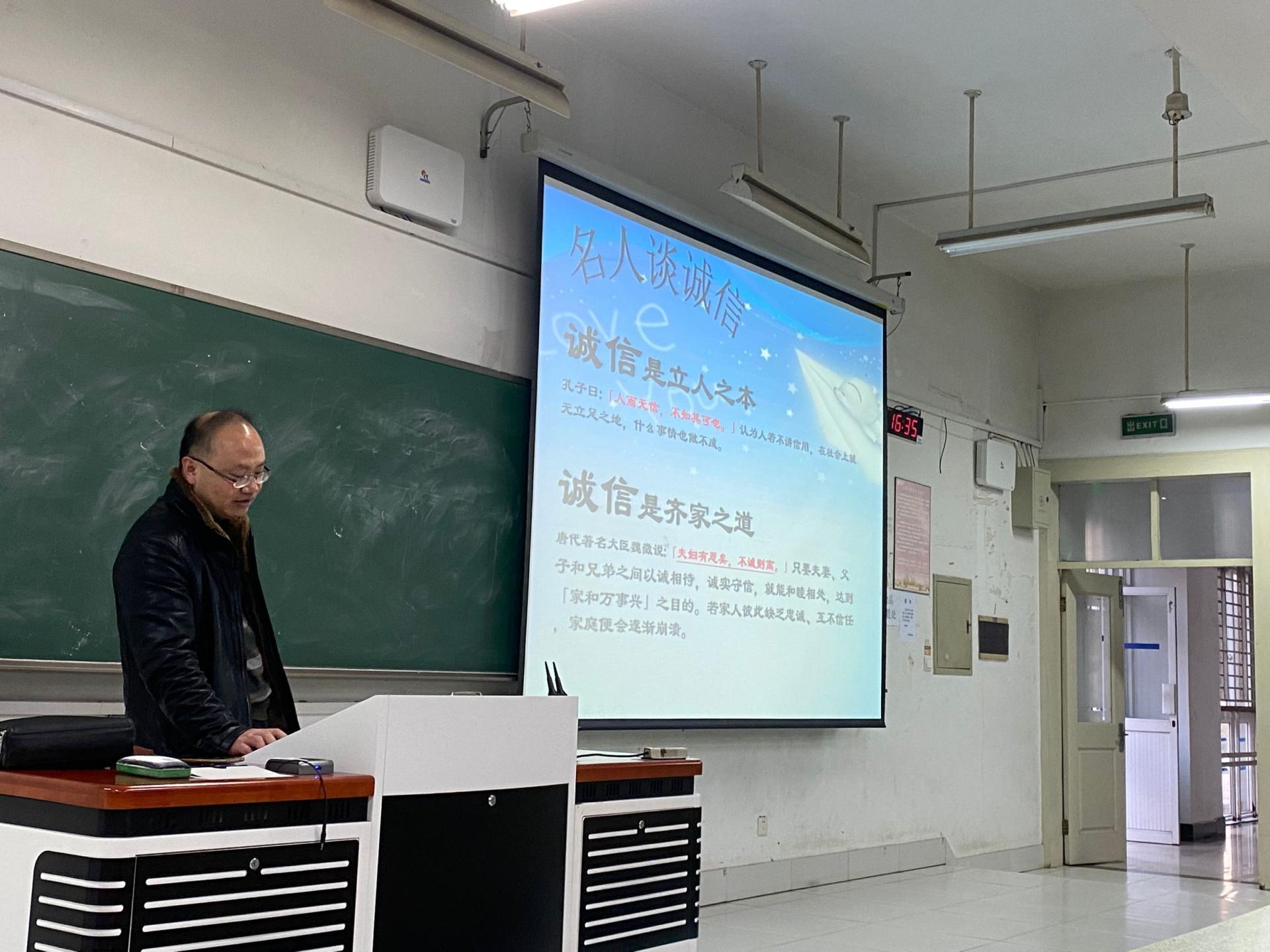 考风考纪作为高校学风建设的重要内容,是营造优良学风、校风的条件,是提高高等教育质量的保证。为了将”诚信教育”贯穿人才培养全过程,12月16日下午3点半,太阳成集团tyc122cc在仁智楼201召开“学风重点建设月”系列活动之“诚信教育”主题教育。本次主题教育由公司党委副书记徐元龙主讲,20级新生辅导员薛姣主持。