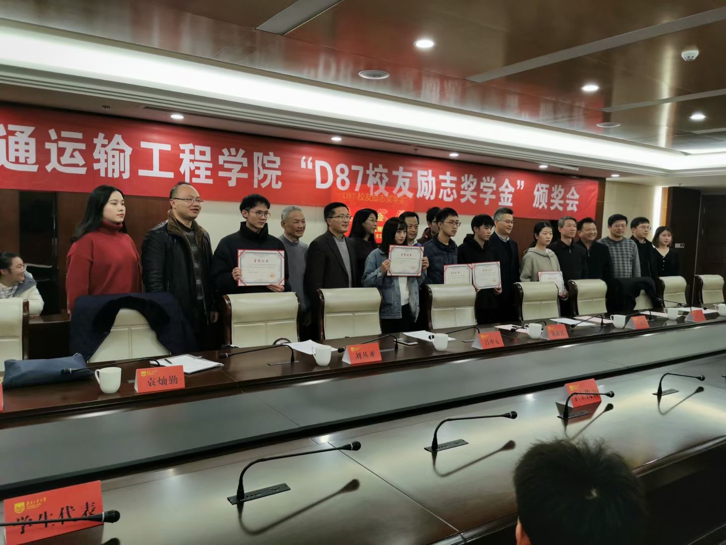 韩书记首先代表学院对水文地质与工程地质专业1987级员工们十年来一如既往给予在校学子成才成长所倾注的关爱表示衷心感谢,并汇报了地质工程专业获得江苏省品牌专业、江苏省一流专业以及刚刚传来的工程教育认证现场考查报告认定该专业达成度优良的情况。徐元龙老师宣读“D87员工励志奖学金”表彰决定,与会领导员工为获奖同学颁发证书和奖金。两位获奖员工代表分别介绍了自己的学习情况,分享了他们进入大学阶段后围绕新目标奋发努力,并取得较好成绩的成长经历。同学们表示,无论碰到什么困难,一定会以员工为榜样,勤奋励志,坚持不懈完成学业目标,将来为国家地质工程事业发展做出应有贡献。