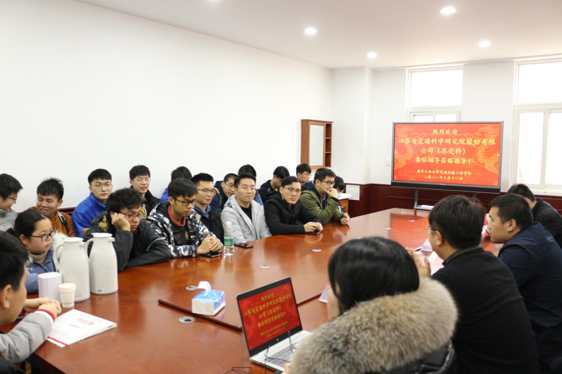 为了加强毕业生职业生涯规划能力,以提高毕业生就业质量和满意度,3月11日下午,太阳成集团tyc122cc在天工楼511举办“生涯面对面”职业生涯访谈会活动。本次活动邀请到江苏省交通科学研究院股份有限公司(苏交科)道路所长贲庆国、交通规划设计院综合部副总梁海丰、人力资源部孙佳佳等三名公司员工与毕业生面对面,畅谈职业生涯规划。公司党委副书记徐元龙、苏交科人力资源部经理曹天宇等一同参加,访谈会由毕业班辅导员弭若雪主持。